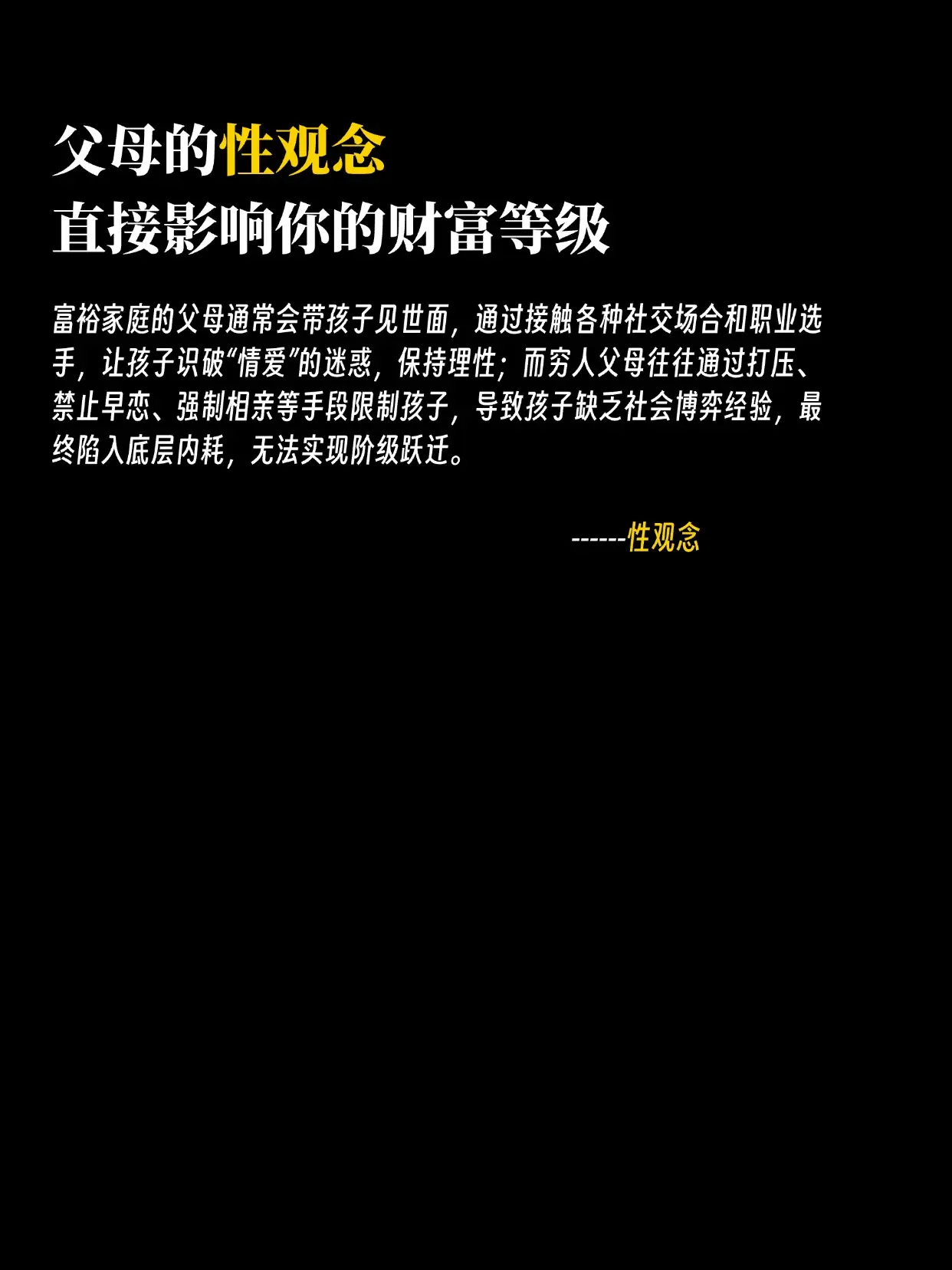 1、父母的性观念,直接影响你的财富等级。 2、情跟欲,本质上都是“狗屁...