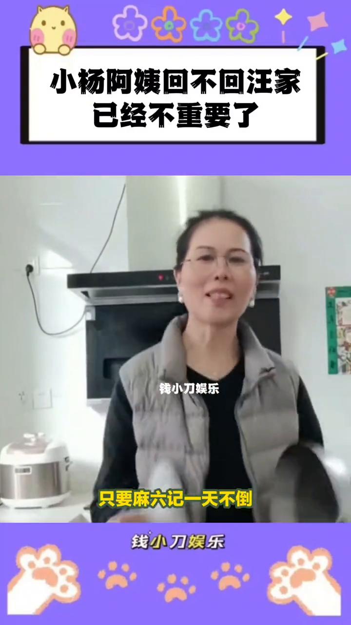 小杨阿姨回不回汪家已经不重要了。 钱小刀娱乐。 其实小杨阿姨回不回去照顾小玥儿已