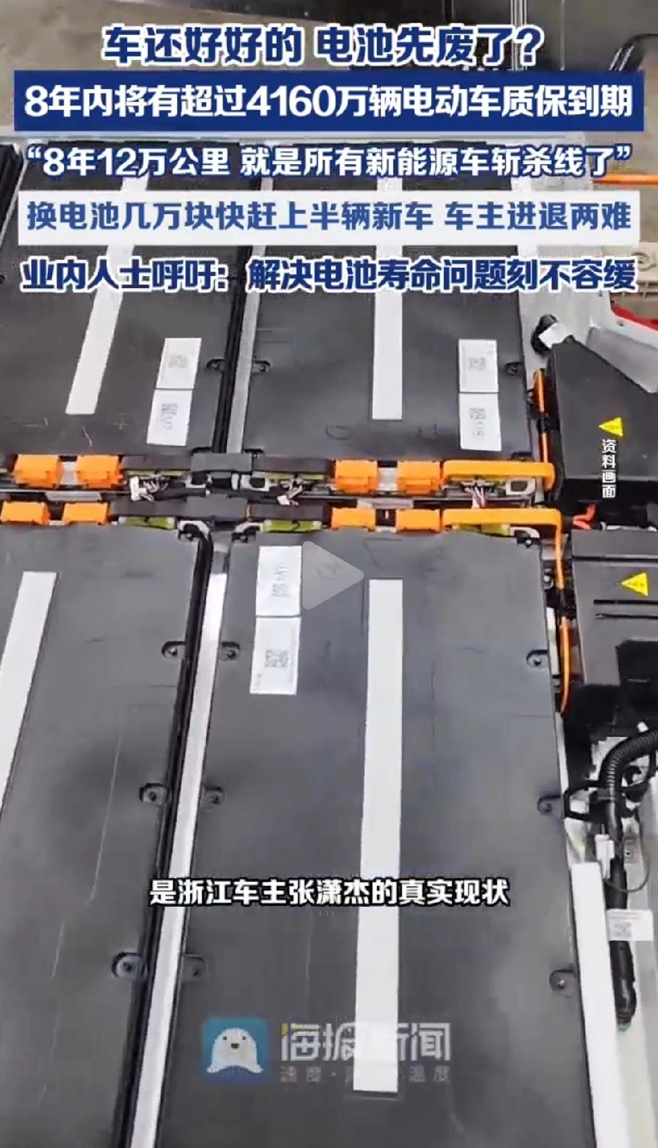 扎心!未来8年,全国将有4160万辆电动车电池质保到期,总换电池成本高达2.5万亿元。可更换电池比二手车还贵,进退两难。 车主:车好好的,电池先“退休”了 浙江的车主张先生,7年前花25万买了辆电动车。这些年开着挺顺手,除了续航短点,没啥大毛病。可最近他烦透了——充满电跑不了200公里,出门心里总没底。 他想换辆车,看上的都得20万上下。那就换块电池凑合开吧?结果一查报价,6万起步! 更扎心的是,他这车现在的二手车价,连6万都卖不到。换块电池比车还贵,这车到底是开还是扔? 这还不是个例。 北京网约车司机丁先生,开了6年电动车,续航从400公里直接跌到280公里。接单半径砍了一半,远点的活儿根本不敢接。换电池要5万多,相当于大半年白干。 杭州二手车市场更直接——6年以上的电动车,车商普遍不愿意收。为啥?电池就是个定时炸弹,谁敢接盘? 最近有个词挺扎心,叫“车电不同寿”。 啥意思?就是你花十几万甚至二十几万买的新能源车,车身还能再开十年,可电池的“寿命”却到了头。 很多人不知道,国家规定动力电池质保标准是8年或12万公里。可一辆车保养得好,开15年甚至20年都没问题。 这就尴尬了:车还能跑,电池先“退休”。 蔚来老板李斌在央视《对话》里算了笔账:未来8年,全国有超过4160万辆电动车要过质保期。按一块电池6万算,总更换成本高达2.5万亿。 2.5万亿是啥概念?19座港珠澳大桥的钱!全国人民每人发1775块,还能剩点儿。 这钱谁出?最后还不是落到车主头上。 今年2月,陈女士在高速上经历了惊魂一幕:仪表盘显示还能跑72公里,离服务区就剩2公里,车突然全车断电,连双闪都打不开。 售后检查完说“电池状态不稳定”,建议以后剩100公里就得充电。可车已过保,后续风险自己扛。 这不是个例。社交平台上,越来越多的车主开始吐槽:续航腰斩、掉电飞快、充电变慢……电池衰减这事儿,正从“个别现象”变成“集体焦虑”。 有网友自嘲:“当年省下的油钱,现在连本带利还回去。” 有网友:“8年质保就是道斩杀线,过了那天,车就不是你的车,是祖宗!” 面对这个死局,有人提出了一套解法——换电。 李斌打了个比方:飞机机身和发动机,从来都是分开租赁、分开运营的。因为寿命不同,分开管理才最合理。电池也一样,没必要绑在一辆车上直到老死。 换电模式的好处是啥? 第一,电池集中管理。每次换电,换电站都给电池做一次“深度体检”,有问题的直接淘汰。车主再也不用担心电池衰减、安全隐患。 第二,电池可以升级。现在续航短?过两年出了大容量电池,直接换一块就行,不用换车。 第三,成本分摊。车电分离后,电池归资产公司管,车主只付租金,不用一次性掏几万块买断。 今年1月,工信部等六部门发了份重磅文件——《新能源汽车废旧动力电池回收和综合利用管理暂行办法》。 里面有句话特别关键:非换电模式新能源车报废时,必须“车电一体”交售,而换电车型除外。 啥意思?政策认可了:换电模式的车,电池和车身本来就是分开的,报废时各走各的路,更合理、更科学。 同时,国家还在县域搞充换电设施补短板试点,允许换电车型以不含电池的价格交购置税。说白了,国家也在给换电模式铺路。 今年1月,蔚来换电次数突破1亿次。春节那几天,单日换电最高超过17.76万次。数据不会说谎,换电正从小众走向主流。 第一批电动车主,忍受了充电慢、续航短,替行业踩了无数坑。如今车身还硬朗,电池却先撑不住了。换,亏几万;不换,没法开;卖,没人要。 这进退两难的滋味,换谁都得哭。 李斌有句话说得挺到位:“今天不解决,8年后就要付出代价。” 这个代价,不能总让车主扛。 换电模式能不能普及?标准能不能统一?维修成本能不能再降? 这些问题,关乎的不仅是4000多万车主的钱包,更是新能源车能不能真正走进千家万户的关键。 希望有一天,买电动车不用再操心电池的事儿。就像加油一样,没电了,换一块,3分钟搞定,继续跑。 8年内将有超4160万辆电动车质保到期 纯电车寿命 动力电池新标准 新能源电池新规