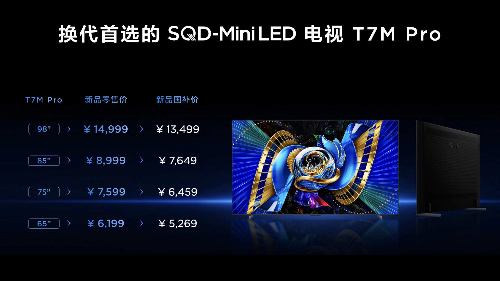 3月17日,TCL举行2026 SQD-Mini LED电视春季新品发布会,推出多款重磅新品,正式宣告2026年成为SQD-Mini LED电视普及元年,让高端画质走进全民家庭TCL深耕显示技术多年,打造的SQD-Mini LED技术兼顾对比度、色域、峰值亮度,构成画质铁三角,荣获多项国际国内权威大奖,是画质的终极解决方案~本次发布的Q9M Pro轻旗舰,搭载最高3552个万象分区,100% BT.2020全局高色域,5000nits峰值亮度,配置拉满,国补后最低五千价位,让机皇画质全民可享真正好画质认准SQD电视T7M Pro作为普及先锋,搭载最高1152个万象分区,超级蝶翼星曜屏,2200nits峰值亮度,搭配安桥2.1.2声道音响,同价位技术降维打击,65英寸国补后五千不到、T7M Ultra全能进阶,拥有2176个万象分区,3000nits峰值亮度,色域、音质、性能无短板,是客厅影游全能搭档。同时发布的Max163M Pro与Max163M 163吋Micro LED巨幕,搭载2488万颗自发光芯片,Pro款亮度超10000+nits,将百万级巨幕拉至249999元,让豪宅也能拥有沉浸式巨幕体验;多年来TCL销量稳居全球前列,Mini LED电视全球销冠。