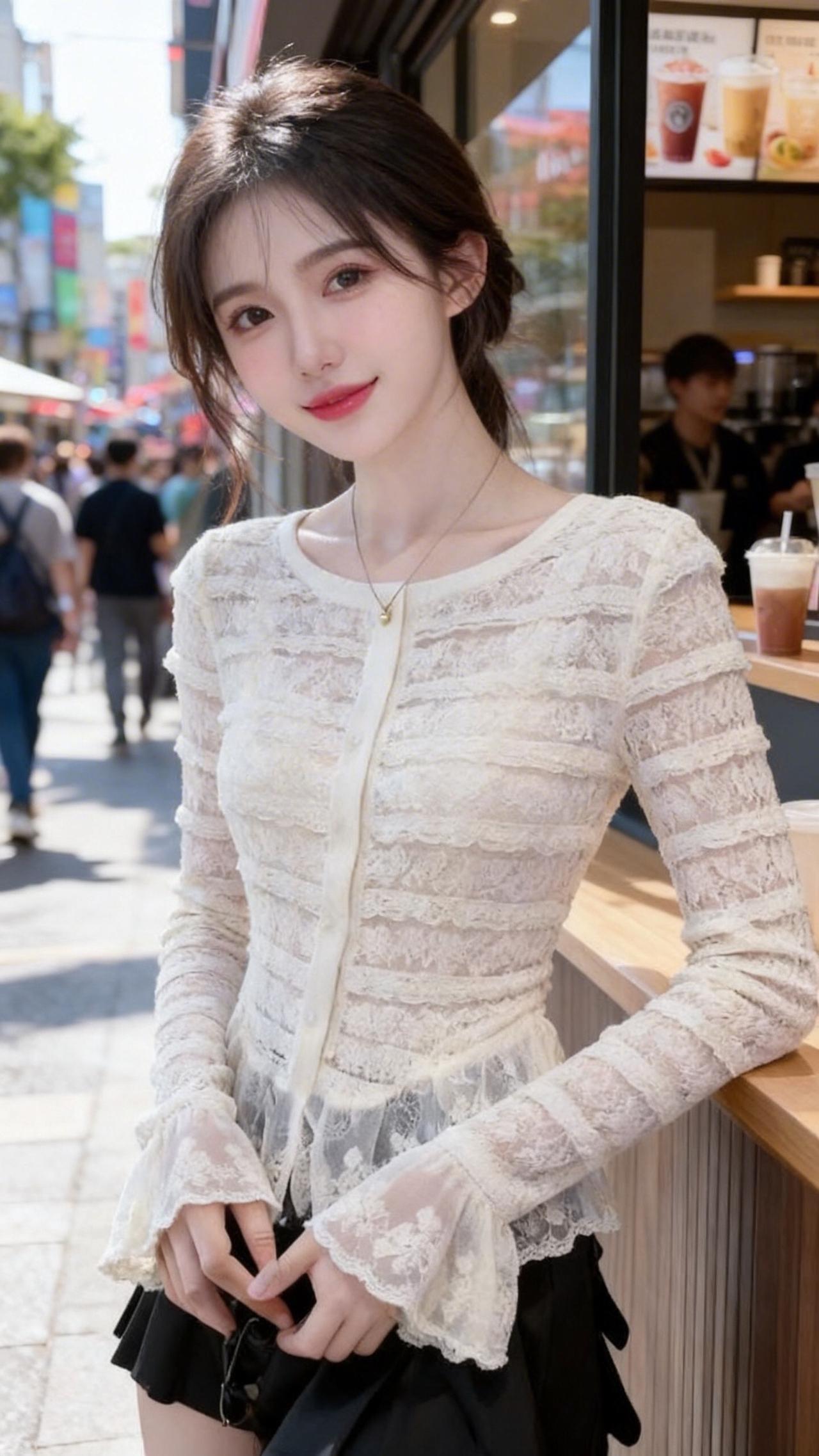 蕾丝打底衫 约会穿搭 显瘦搭配甜美女孩 温柔穿搭