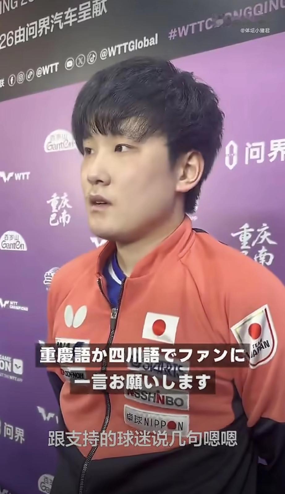 这个记者也真是无脑,自讨没趣[酷拽], 对于众所周知的事情,该回避就回避,但这个记者却迎难而上,问在重庆冠军赛上结束比赛的张本智和说,你能用重庆话或四川话跟支持你的球迷说声谢谢吗? 张本肯定知道在这儿没人待见他,让心气高傲的他这样做,那他肯定拒绝啊。 这记者以后要想好了再问,人家是日本人,谁认你四川同胞啊,提这些要求净是让我们国内球迷为你尴尬。