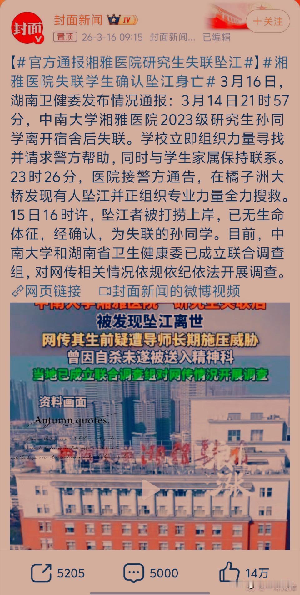 当象牙塔成为“高压塔”:研究生心理危机频发,我们该反思什么? 近日,湘雅医学院一名硕士研究生的离去再次刺痛公众神经。这不是孤例——每年高校“跳楼新闻”周期性出现,却在短暂的舆论喧哗后被迅速遗忘。作为国家人才储备库的研究生教育,为何频频成为心理危机的重灾区?我们需要的不仅是哀悼,更是系统性的反思与改革。 一、被忽视的“高压锅”:研究生群体的三重困境 1. 学术内卷下的“工具化”生存 “发论文才能毕业”的硬指标、导师课题组的KPI考核、同辈竞争的焦虑……当学术追求异化为数字竞赛,许多研究生沦为科研流水线上的“学术民工”。某高校匿名调查显示,72%的研究生曾因科研压力产生自我否定情绪。 2. 权力失衡下的“沉默螺旋” 导学关系异化现象屡见不鲜:从安排私事到压榨劳动力,从延迟毕业威胁到成果侵占。在“毕业大权在握”的现实压力下,学生往往选择隐忍,直到心理防线彻底崩塌。 3. 断裂的社会支持系统 从本科集体生活到研究生独立科研的突然转变,叠加婚恋压力、就业迷茫、经济困窘,许多年轻人尚未建立成熟的抗压机制,就要独自面对多重现实困境。 二、不是“整改”而是“重构”:我们需要什么样的研究生教育? 1. 建立导师权力“防火墙” · 推行导师年度审核制,将学生心理健康状况纳入考核指标 · 设立独立于院系的第三方学生申诉委员会,打通维权通道 · 强制导师参加心理健康培训,建立健康的导学边界 1. 构建学术评价“缓冲带” · 打破“唯论文”毕业标准,建立多元化学术成果评价体系 · 设立弹性学制,允许学生根据心理状态调整学业进度 · 在培养方案中增加心理健康必修学分 1. 织密校园心理“防护网” · 将心理咨询纳入研究生医保范畴,降低求助门槛 · 建立“辅导员-导师-心理咨询师-室友”四级预警机制 · 开设匿名树洞、朋辈支持小组等非正式求助渠道 三、写在最后:比学术产出更重要的,是鲜活的生命 斯坦福大学前校长约翰·轩尼诗曾说:“研究生教育不是筛选谁最能忍受痛苦,而是培养能持续创造价值的人。”当我们讨论高校改革时,必须认识到:没有心理安全感的学术环境,培育不出真正的创新人才。 每一个消逝的生命都是教育系统的“压力测试点”。与其追问“为什么现在的学生这么脆弱”,不如反思“我们的教育体系如何制造了这种脆弱”。研究生教育改革不是修修补补的“整改”,而应从生命关怀出发的系统重构。毕竟,教育的终极目标不是制造学术机器,而是培育完整的人。抑郁研究生 研究生身体状况