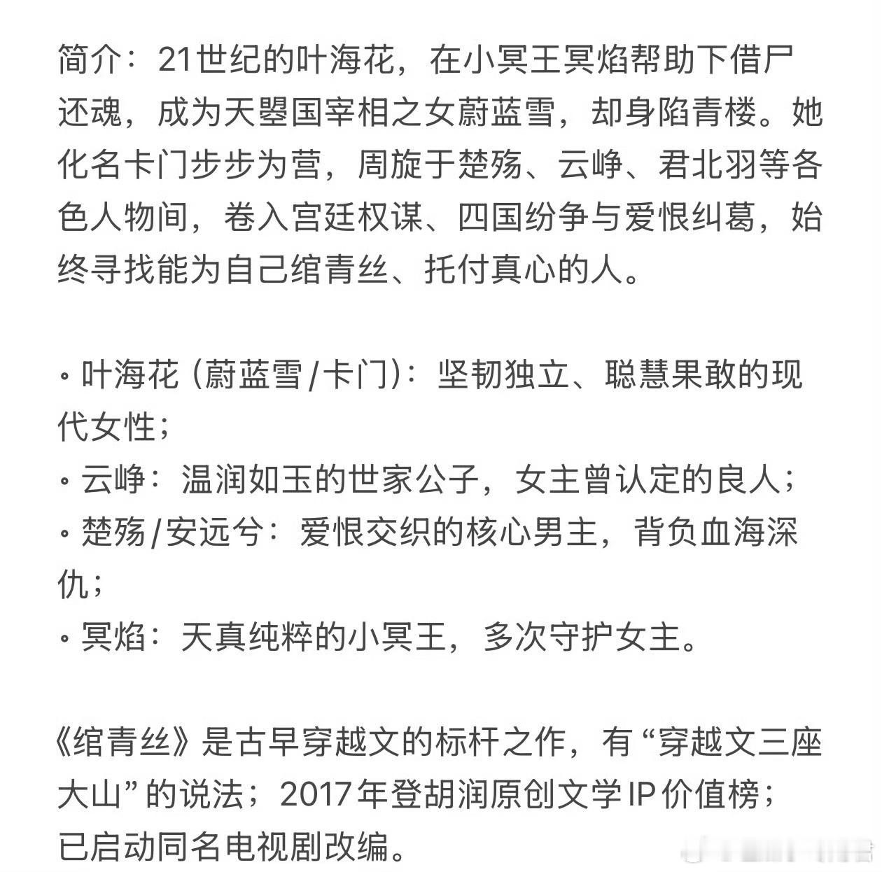 s+优酷古装权谋剧《绾青丝》导演:曹盾(长安十二时辰,长安的荔枝)联合导演:杨彪(你安全吗,海上牧云记)摄影指导:刘冬(敦煌英雄,长安的荔枝)美术指导:杨志家(失恋33天,等风来)造型指导:高菲(三生三世十里桃花,大宋宫词)改编自波波同名小说定Q2开机