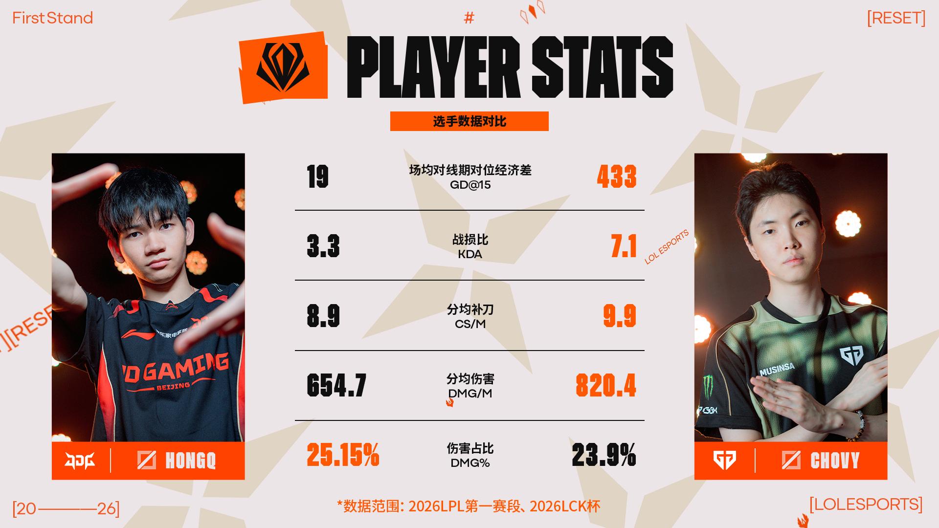 赛事官方分享JDG对阵GEN赛前数据:Chovy多项数据领先HongQ