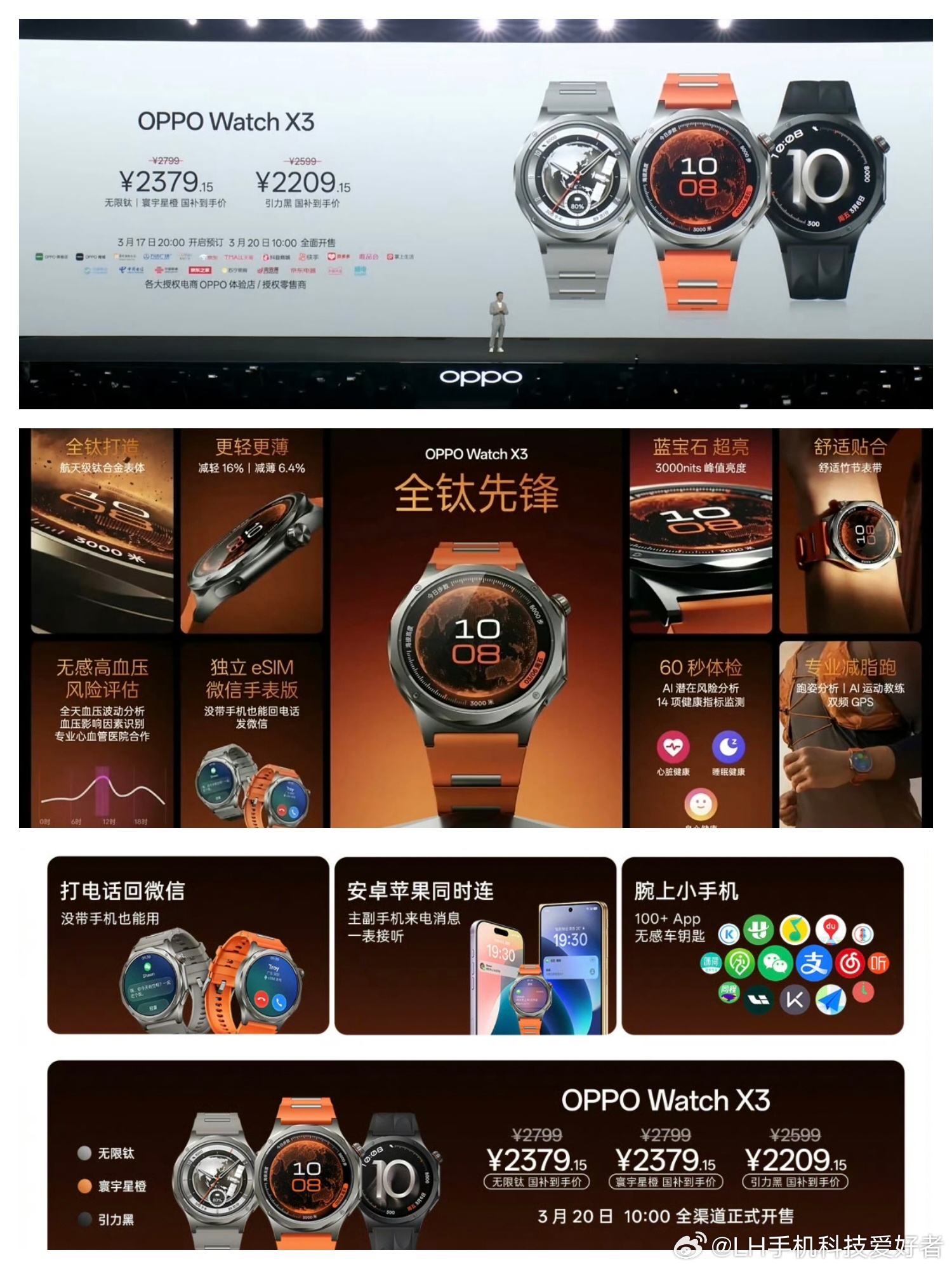 OPPO Watch X3智能手表发布,国补后2379.15元起售。