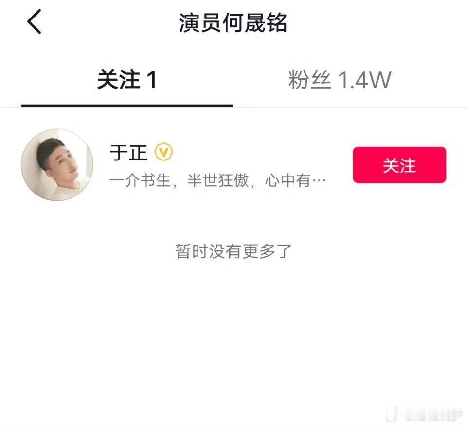 曝何晟铭专开小号用来回忆和于正的过往何晟铭小号只关注了于正啊,真的只关注他一个人,而且专门开小号