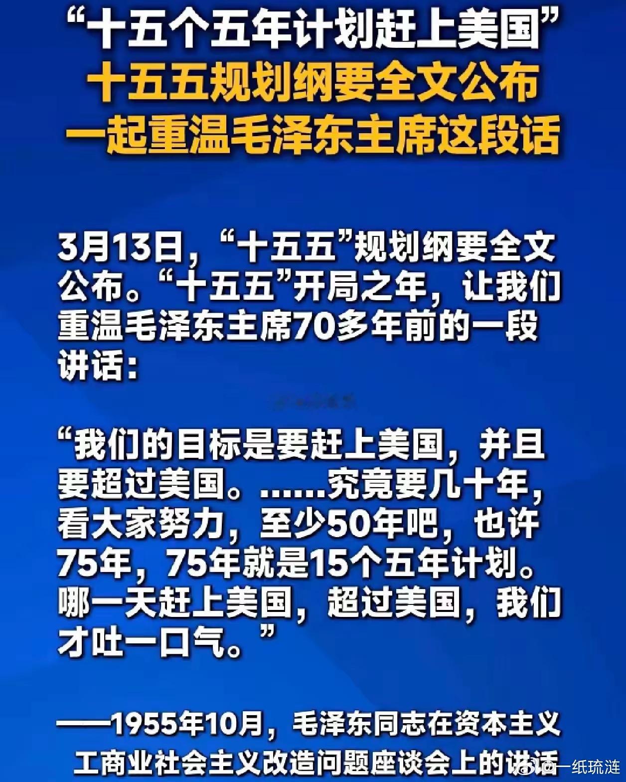 看到这个70年前的十五五计划,不知道大家是何感受?还想嘲笑当年我们超英赶美的口号吗?有些人是我们永远不配嘲笑的,而嘲笑他的人才是那个该被鄙视的人。顺便说一句:教员1957年的原话是用十五年左右时间钢产量超过英国。事实上在1973年,也就是教员提出钢产量超过英国的16年后,中国的钢产量追平英国。看到了这样的事实,你就知道谁更可笑。