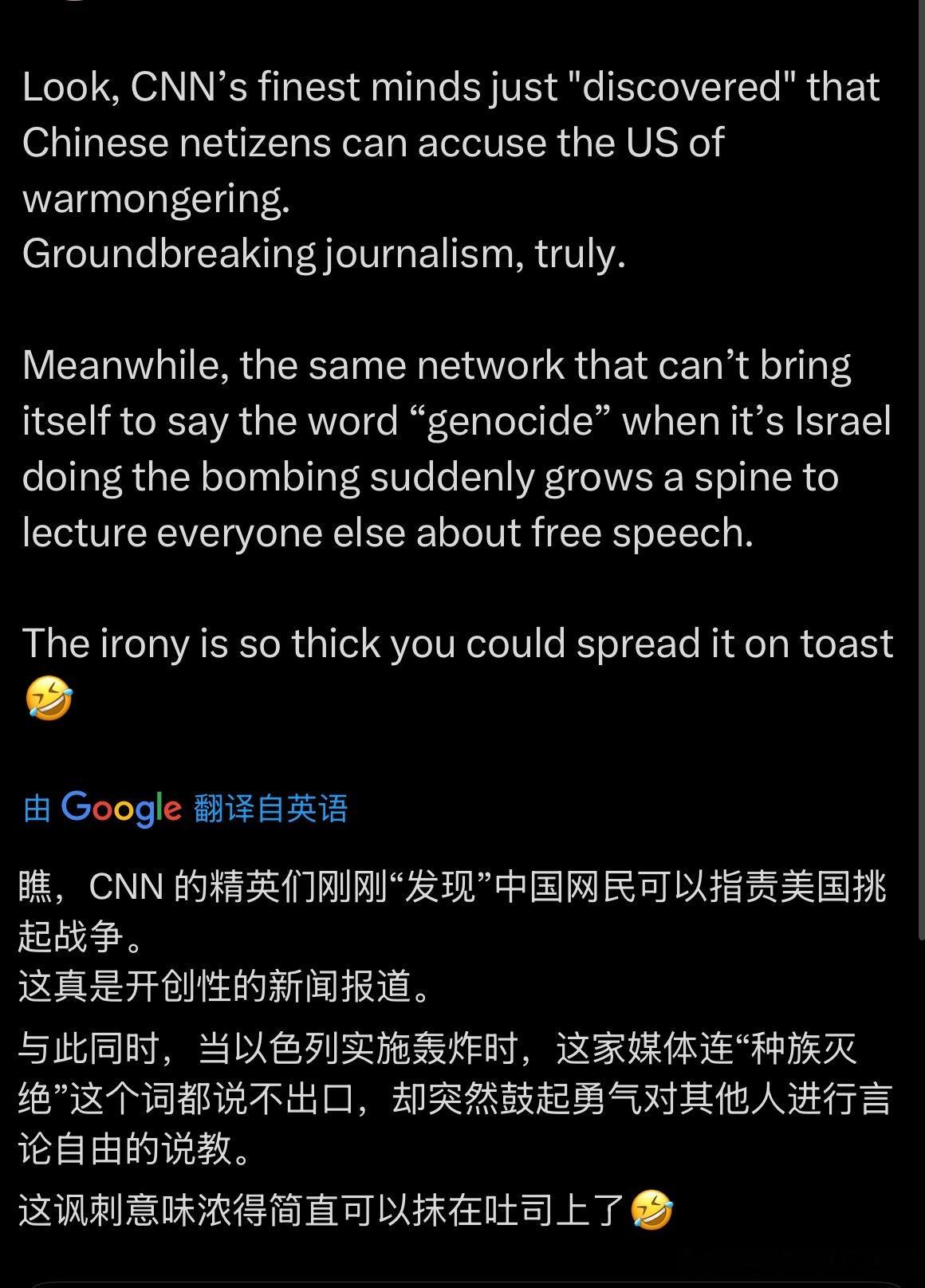 CNN:“中国微博网友居然可以发谴责美国的内容!”这算什么大发现吗也值得发条新闻