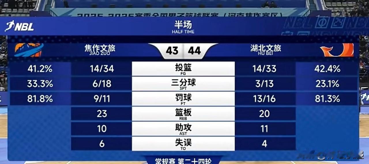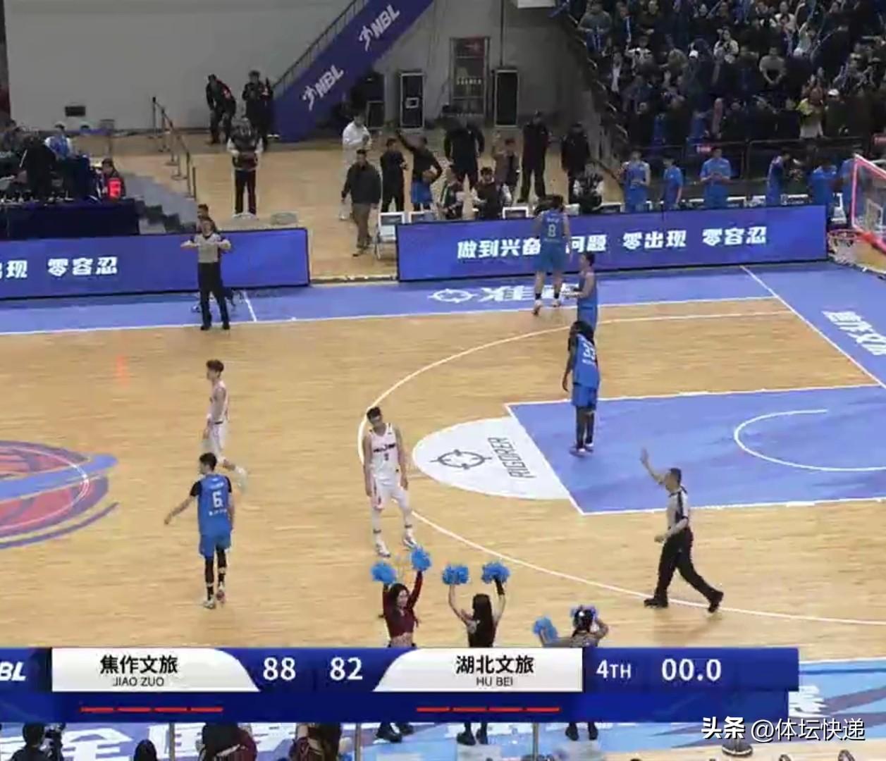 焦作文旅主场小胜湖北文体一只脚踏入季后赛。NBL常规赛只剩3轮,焦作文旅迎冲击季后赛的关键战,主场迎接湖北文体的挑战。本赛季双方首次交手,焦作文旅饮恨,此役正值冲击季后赛的关键时刻,定要拿下对手。首节开始,湖北文体反客为主,一波6:0占先。随后焦作文旅调兵遣将,一度缩小分差,但在防守端表现不佳,湖北文体再次扩大分差。首节结束,焦作文旅15:25湖北文体。次节焦作文旅敢于冲击内线,为外线创造机会,内外联动缩小分差,湖北文体叫暂停。暂停回来,焦作文旅一度将比分反超,但随后过于急功近利,又被湖北文体夺回领先权。李维纲指导叫暂停。暂停回来,焦作文旅内外联动不断缩小分差。半场结束,焦作文旅43:44湖北文体。第三节开局,焦作文旅抹平分差,双方陷入阵地战。湖北文体叫暂停。暂停回来,湖北文体一度建立领先,但焦作文旅依靠顽强防守打乱湖北文体进攻节奏。三节战罢,焦作文旅67:62反超比分。第四节开局,焦作文旅一度将分差扩大到两位数,湖北文体依靠外援顽强缩小分差,焦作文旅叫暂停。暂停回来,焦作文旅再次扩大分差。比赛末段焦作文旅挡住了湖北文体的疯狂反扑,将胜利收入囊中,为进入季后赛迈出坚实一步。全场比赛结束,焦作文旅88:82湖北文体。