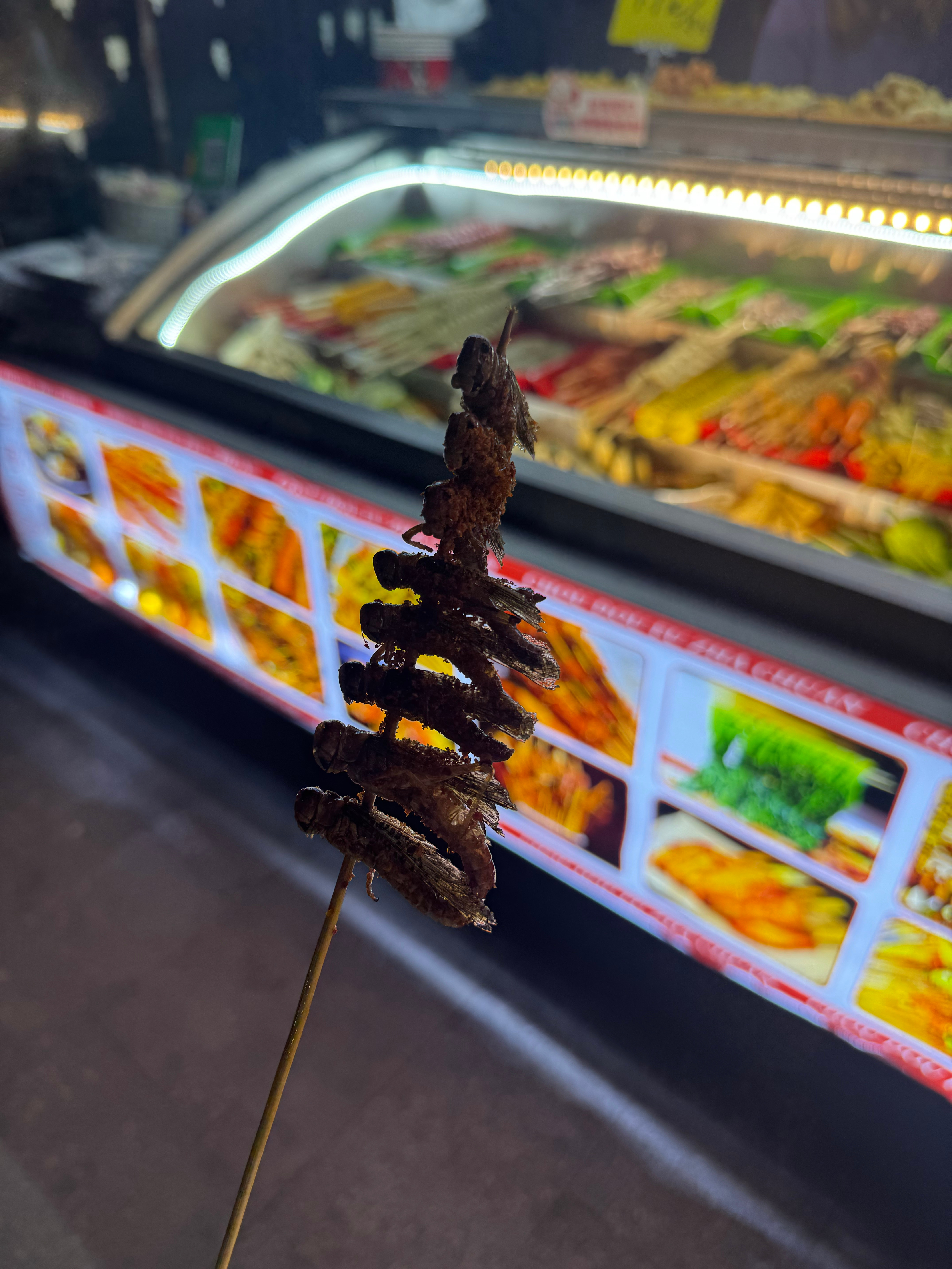 分享日常有用不,炸蚂蚱买肉夹馍的时候看到的,很好奇好不好吃,有点吓人,但是我也不怕,尝试着买了一串头和腿是酥酥的,肚子是软的炸串的哥说就是这种越嚼越香,还行,也不觉得特别香,倒也不恶心我妈吃了一个就不吃了,我把剩下的吃完了