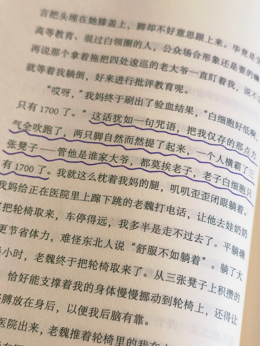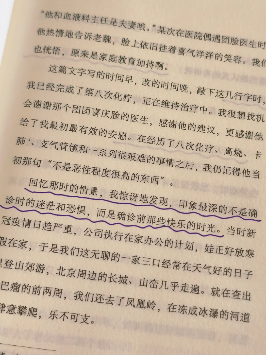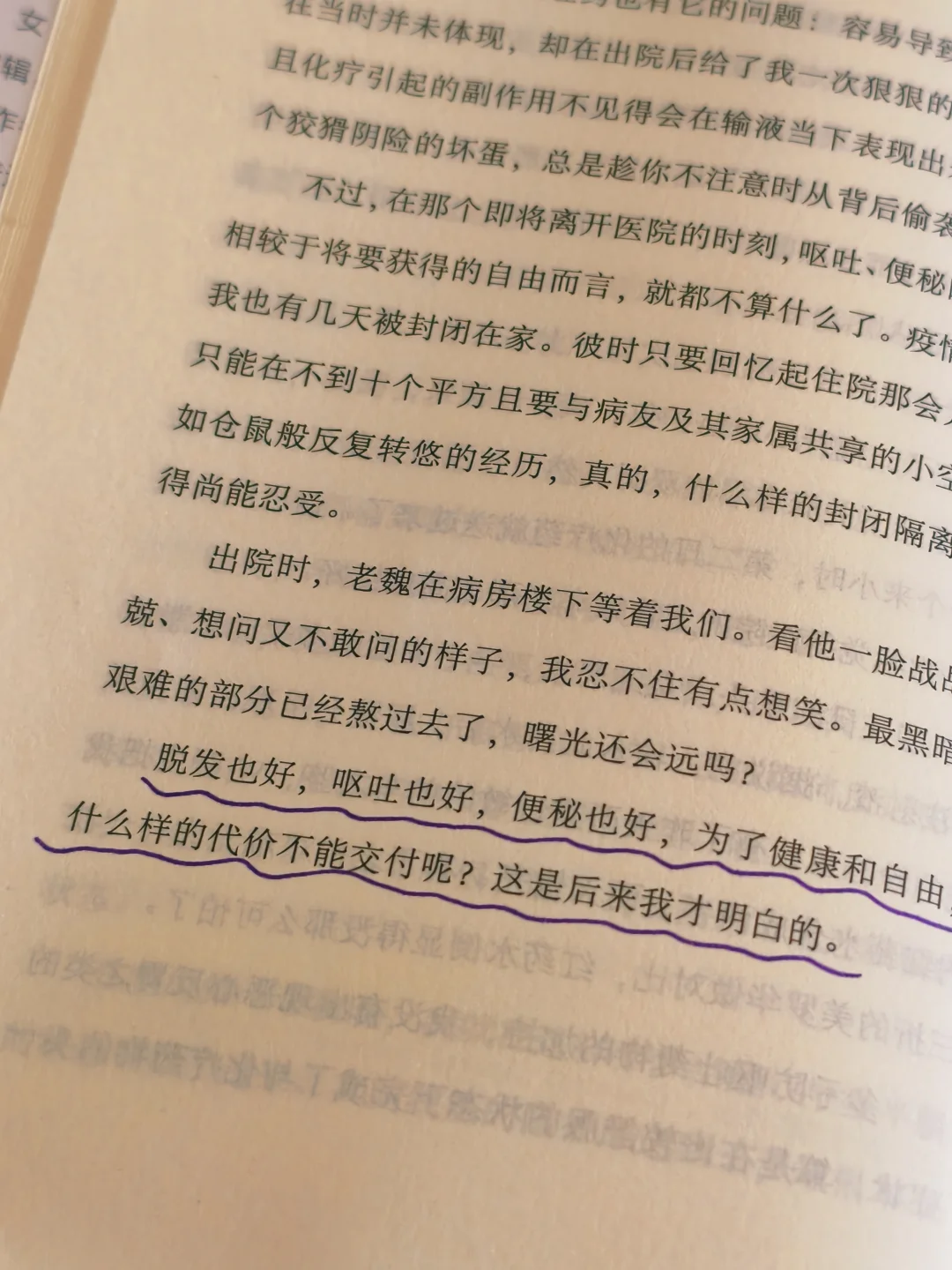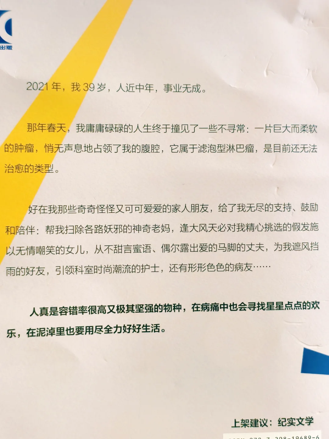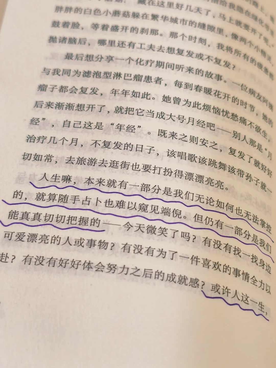 如今我已经出院,这本书也成了我放在床头的必读书。作者的经历告诉我们,生病不是人生的污点,只是一段需要放慢脚步的旅程。无论是癌症还是精神困境,那些打不倒我们的,终将让我们更懂珍惜——珍惜家人的唠叨,珍惜医护的温柔,珍惜病友递来的一颗糖,珍惜哪怕只有片刻的轻松与欢笑。