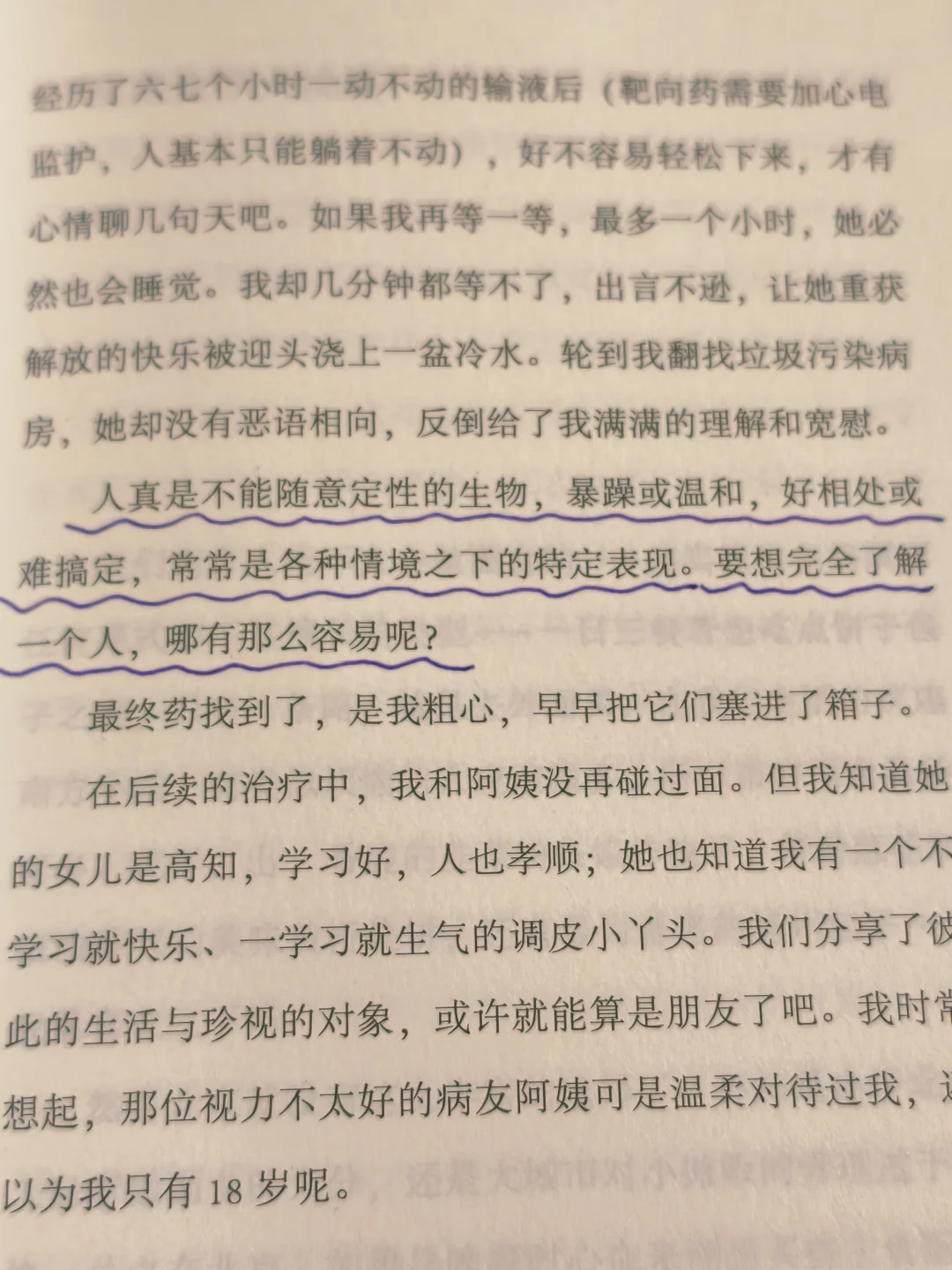 读着读着,我忍不住想起自己住院的日子:妈妈每天变着花样炖的汤,朋友每天准时发来的信息,护士姐姐凌晨查房时轻轻掖好的被角,甚至病友妹妹分享的助眠小妙招——原来无论身患何种病痛,我们都不是独自在战斗。那些曾让我灰心丧气的深夜,那些觉得“撑不下去”的瞬间,正是这些细碎的善意,拼成了照亮困境的光。