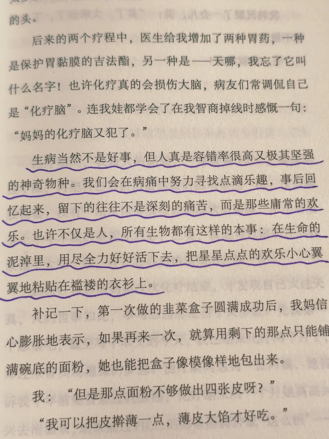 读这本书的过程,我总是笑着笑着就哭了,哭着哭着又笑了,读完只觉得,这书里的每一页,都在对我说:“别怕,病痛里也能长出欢乐。”