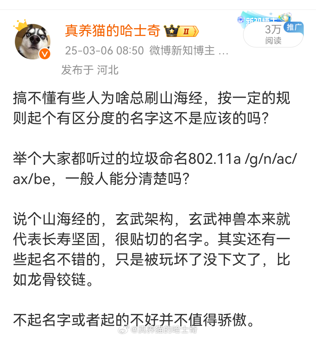 小米SU7蛟龙底盘估计以后没人刷山海经了吧?山海经命名其实挺好的,小米的命名方式也挺好的。叫什么只是一个符号,命名就应该起一个大家都比较容易记住的,不然起名的意义就大打折扣了。 很多人也不是反感山海经命名,只是讨厌华为,仅此而已,