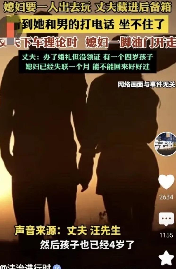 河南郑州,2025年5月,妻子要单独出门,丈夫怀疑她是出轨,偷偷藏进后备箱里,妻子一边开车,一边和男子通话,妻子娇声娇气:我还有5公里就到了,丈夫火冒三丈,立马推翻后座,跳出来抢手机,妻子把车一停:咱俩下车再说!谁知他刚一下车,妻子一脚油门跑了,一个多月不见人影,丈夫垂头丧气:只办了婚礼,没领结婚证,工资10000,全部交给妻子,孩子4岁,啥都不计较了,能不能回来好好过? 事发当天,当地一名男子发现妻子突然提出要单独出门,往日里妻子很少有这样的举动,加之当天的特殊日子,心底的猜疑悄然滋生。 他没有直接质问,而是选择了一种极端的方式求证,趁着妻子准备出发的间隙,他悄悄钻进了自家汽车的后备箱,想要弄清妻子独自出门的真正目的,也想印证自己心中的疑虑。 汽车启动后男子在狭小闷热的后备箱里大气不敢出,只能凭借听觉和微弱的光线判断行驶方向,行驶一段时间后,他清晰地听到驾驶座上的妻子拨通了一通电话,语气娇柔,与平时和自己相处时截然不同。 电话那头传来陌生男子的声音,妻子轻声告知对方自己还有5公里就到了,这句话像一根火柴,瞬间点燃了男子积压已久的猜疑和怒火,他再也无法克制,猛地用力推翻汽车后座,从后备箱跳了出来,伸手就去抢夺妻子的手机,想要查看更多真相。 突如其来的变故让妻子惊慌失措,短暂慌乱后,她猛地将车停在路边,提出下车沟通,男子被怒火冲昏了头脑,没有多想便推开车门下了车。 可他刚站稳脚步,妻子便立刻发动汽车,一脚油门扬长而去,只留下他一个人孤零零地站在路边,愣在原地许久无法回过神来。 从那天起妻子便彻底失去了踪影,电话、微信被全部拉黑,就连妻子的家人也切断了与他的所有联系,男子四处寻找,辗转打听妻子的下落,可一个多月过去,始终没有任何消息。 这段时间里,他独自带着4岁的孩子生活,看着孩子懵懂的脸庞,满心都是懊悔和无助,他坦言,自己和妻子只是按照当地习俗举办了婚礼,并没有领取结婚证,这些年来,自己每月一万元的工资,从来都是一分不留全部交给妻子,对妻子和孩子百般迁就,从未有过丝毫计较。 如今男子早已没了当初的怒火,只剩下满心的疲惫和期盼,他垂头丧气地诉说着自己的无奈,只求妻子能够早日回来,抛开过往的矛盾,好好过日子,给孩子一个完整的家。 据悉男子曾向警方求助,却因未领取结婚证,双方在法律上不构成夫妻关系,警方无法介入协助寻找。 这场因猜疑引发的闹剧,最终只剩下男子和年幼的孩子,以及一段未被法律认可、却满是遗憾的情感,也给所有未领取结婚证的同居伴侣,敲响了一记关于信任与责任的警钟。
