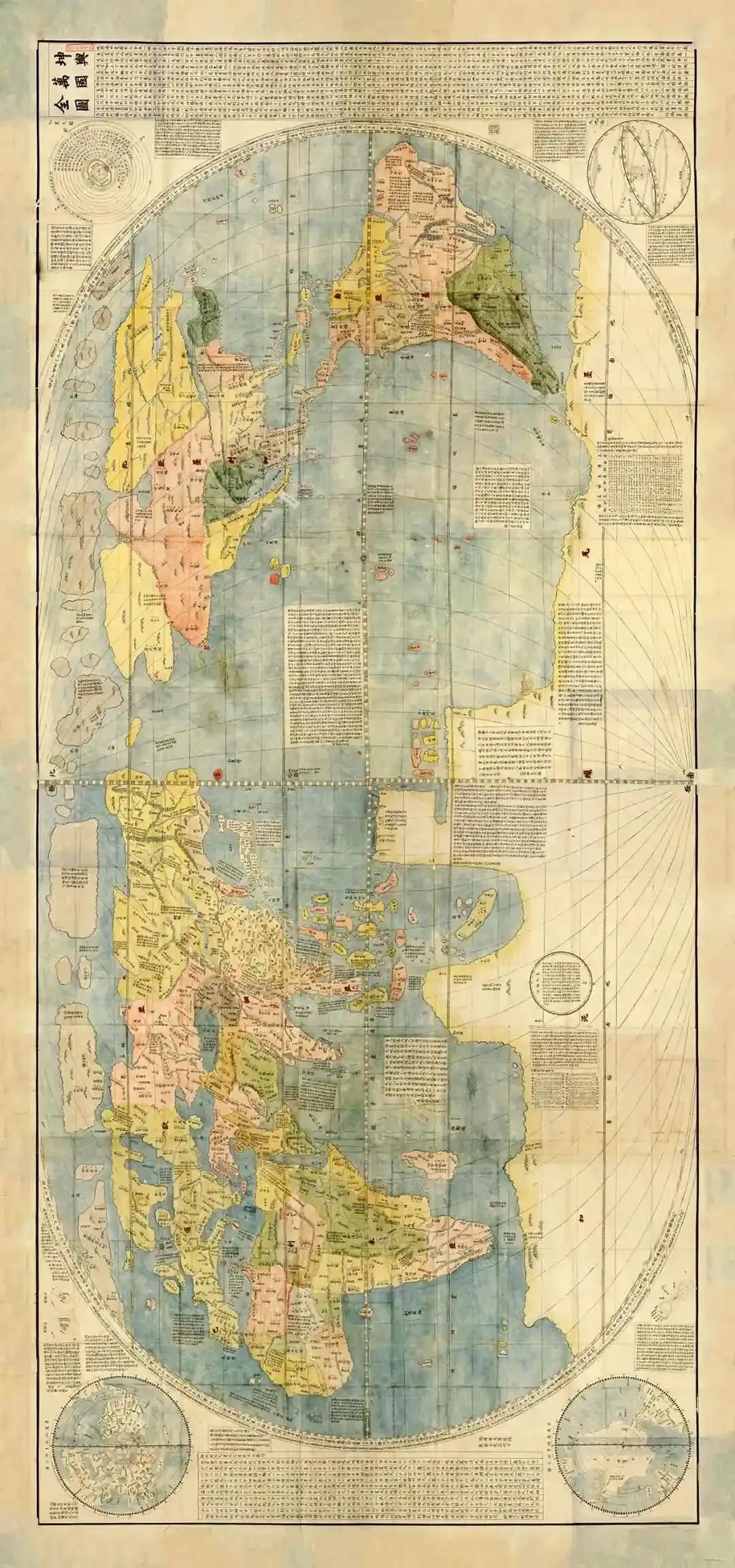 万历年间的这个《坤舆万国全图》现在被考证真实作者不是利玛窦,而是基于郑和团队绘制的海图,利玛窦是进献者或整理者,不是原作者。 值得一提的是利玛窦刊行世界地图,故意将中国画绘得如弹丸之地,意在打掉中国人的自尊自大,使之觉悟天外有天,人外有人,从而为天主教虚位而进中国。 另外,利玛窦原来的地图将中国放在一隅,他听从李之藻的建议后,将中国放在了地图的中间,大明王朝居于天下之中,与传统的中国观念相合,颇受欢迎 当时朝廷最高统治者知道地图信息和知识的重要性,但却不敢推广,所以说:皇子可用,民不可用。可惜了。