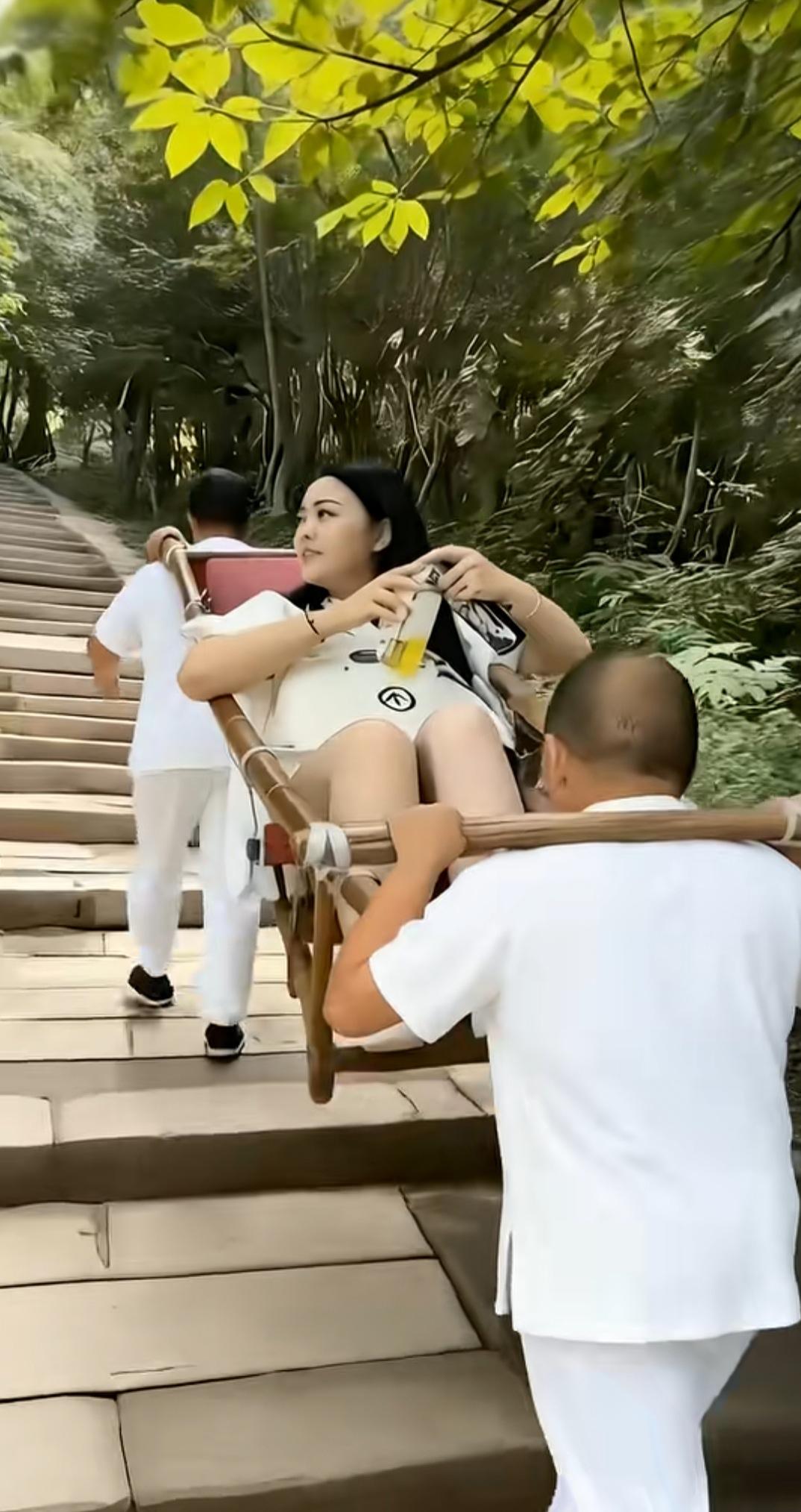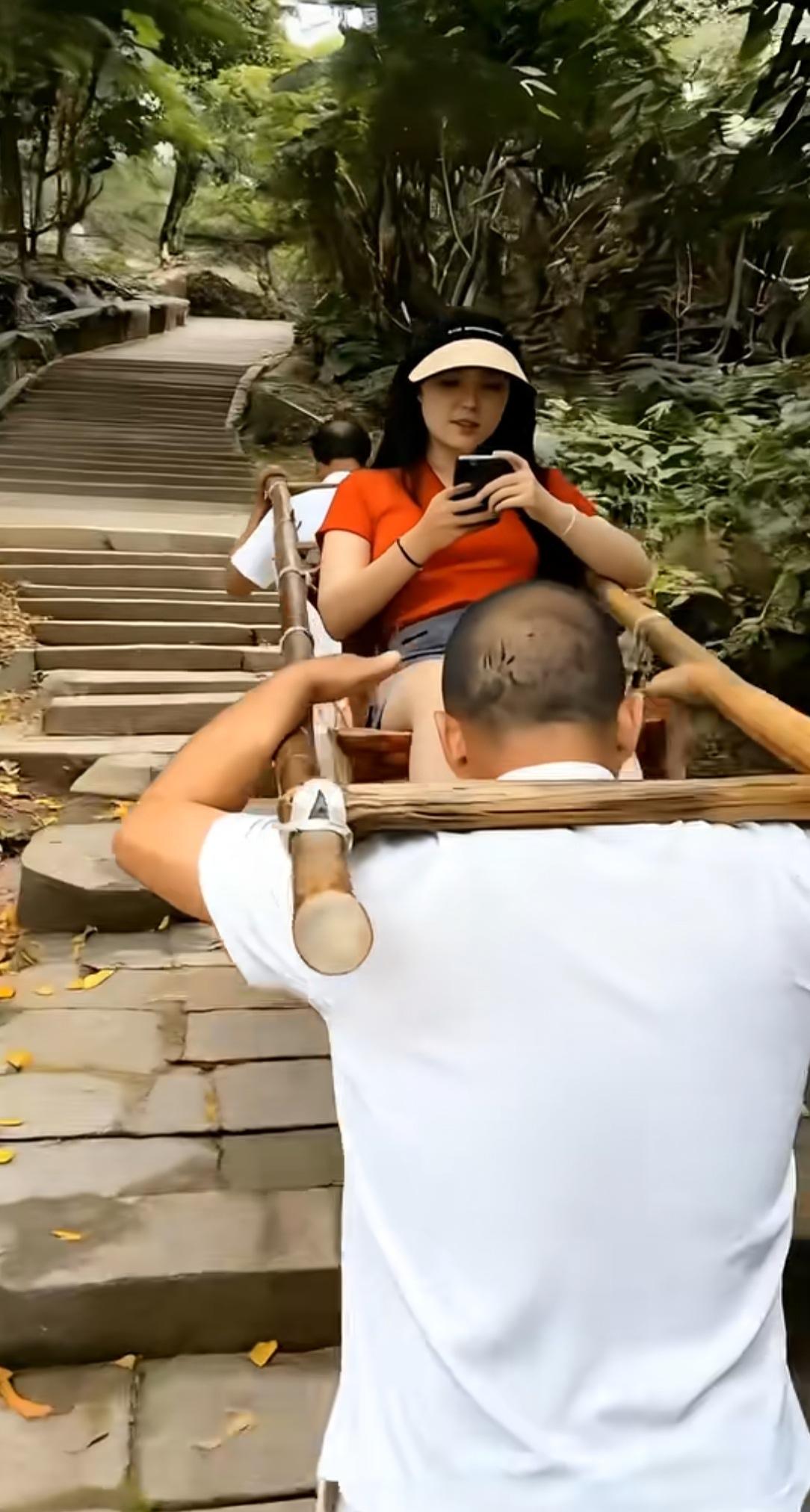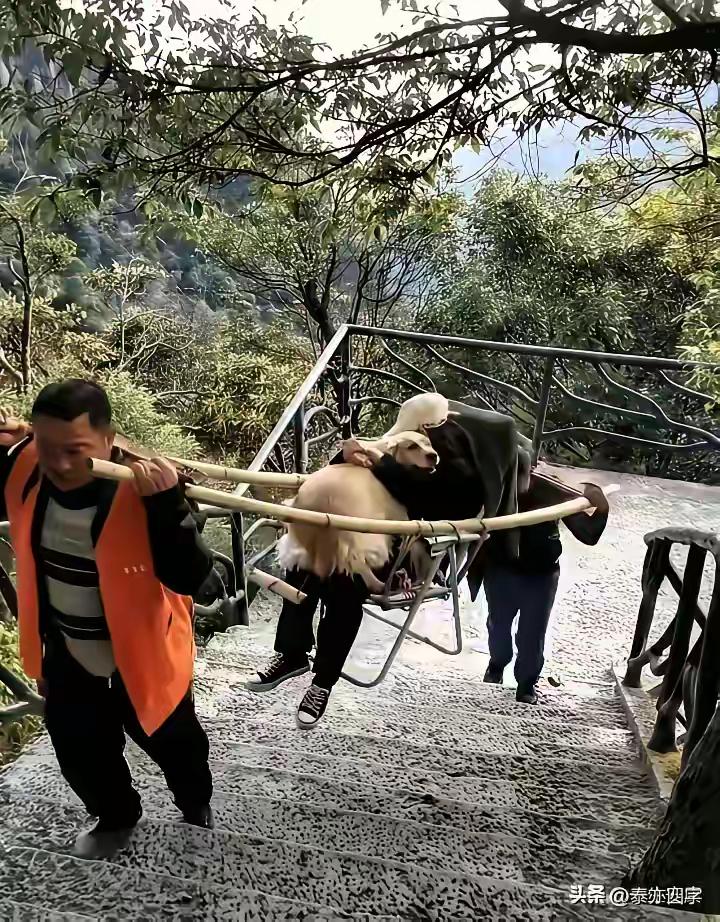 下面几张图片,心里很不是滋味,五味杂谈。拉洋车、抬骄子的,这些旧中国封建帝制和民国时期的产物,不知从何而起,竟然在社会主义新中国共产党领导下的公有制新社会中又起死回升,而且还茁壮成长起来,真的让人不可思议。 这种社会现象的滋生,是社会进步还是历史发展的必然,不同的认知有不同的答案。 从市场经济学角度来看,这是一种服务与被服务的关系,有需求就会有售卖。有人愿意花钱购买服务,有人愿意出卖自己的劳动赚钱养家。从人所处的社会地位层次关系来看,这就是上层有钱人信奉钱能搞定一切的理念根源,低层人为了赚钱,什么尊严和脸面都不重要,有钱赚就能活命,没钱就啥也不是。 从价值观理念的观点看,劳动创造价值,尽管是老年人抬着年轻人、甚至于抬着狗上山游走,挣的是苦力钱,但这钱挣的干干净净,就是感觉有点憋屈。都说劳动最光荣,可这样的劳动,怎么干也使人找不到为社会主义事业添砖加瓦的感觉,只有被人使唤份儿。 有人说这是一种就业形态,可田野觉得不是这样,这恰恰反映了我们这个社会不良现象。 田野非常喜欢莫言的段话,他说他有一种偏见,觉得文学艺术永远不是粉饰社会,不是为社会唱赞歌的工具。文学艺术就是应该暴露和揭示社会的黑暗,揭示社会的不公正和不公平,也包括揭示人类心灵深处的阴暗的一面,揭示人性中恶的成份。 我们的社会自从拨乱反正后引入市场经济发展体制,以经济建设为中心,一切向钱看催生了只有资本主义制度下和封建王朝时期才有的社会工种。坐滑杆和抬滑杆的都是人,他们显然不是一个社会层面上的人人平等,而是社会收入差距拉大的血淋林体现。 作为中国共产党领导下的社会主义国家,党的宗旨是不但要让人民群众从苦难的体力劳动中解救出来、挺直腰杆地站起来、鼓起腰包富起来,而且还要让他们有体面丶有尊严的活着。活的心情愉快,活的轻松自如,活的无忧无虑。现在看来,坐滑杆的人和抬滑杆的人完全是不一样的心情,不免让人心生怜悯,呼吁社会人人平等。