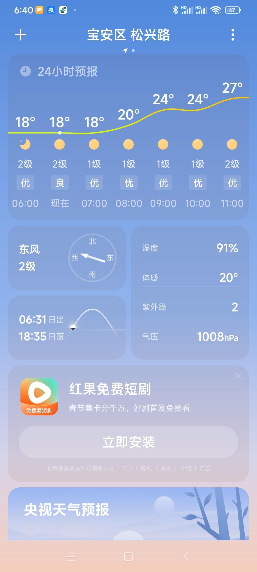 我的今日状态:😁轻松愉快 我这里的天气:☀️晴天深圳今日晴转多云,气温18度到27度,湿度91度,大家早上好,周三快乐![作揖]