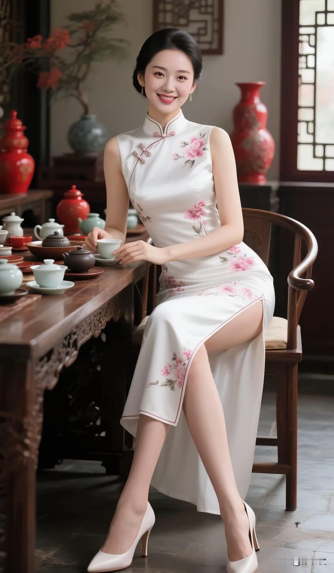 三个女人一台戏,旗袍雅韵亭亭立。贴身裁剪显风情,高贵典雅若晨曦。