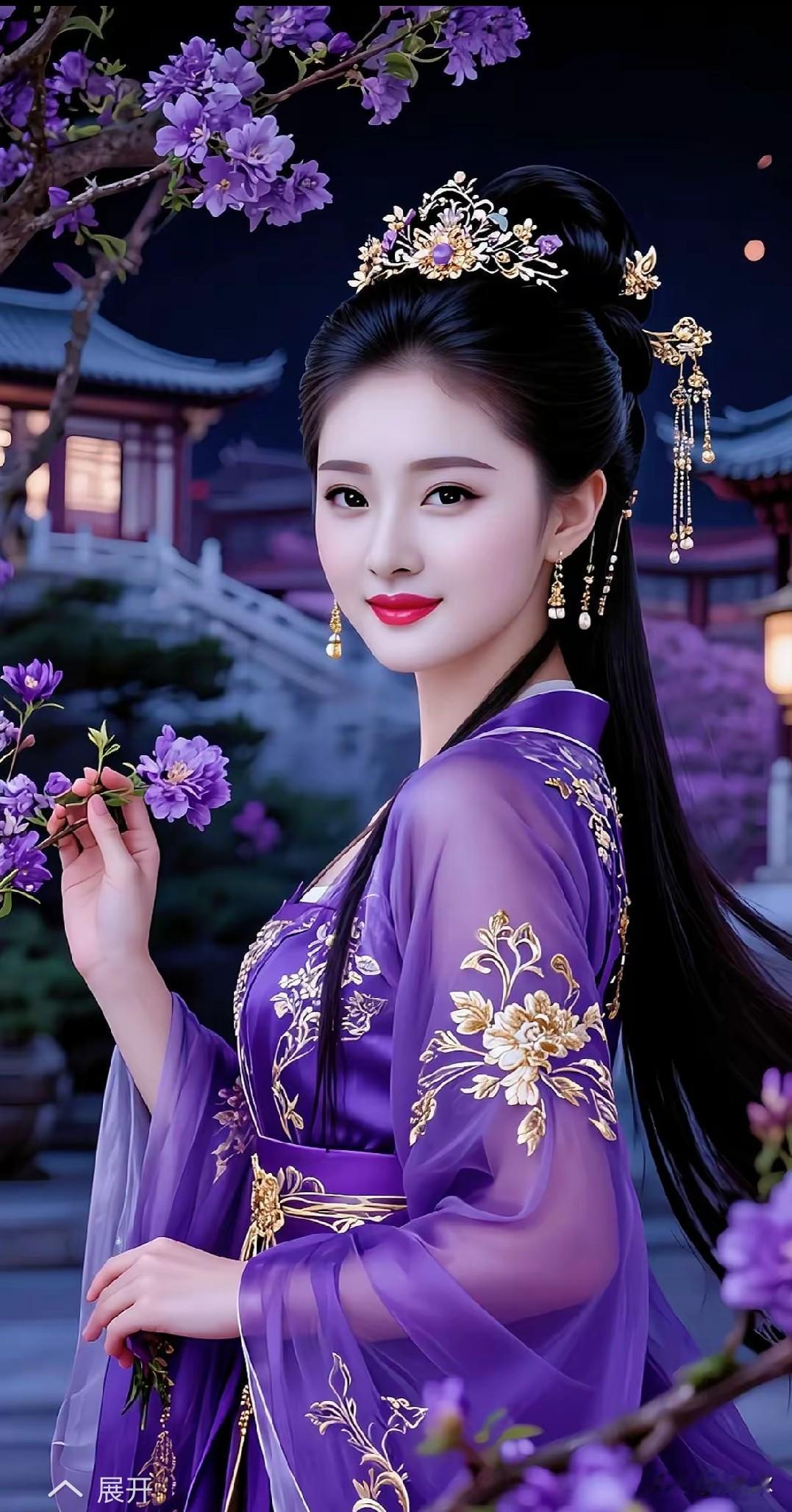 梦幻古风少女,紫色花衣飘逸动人