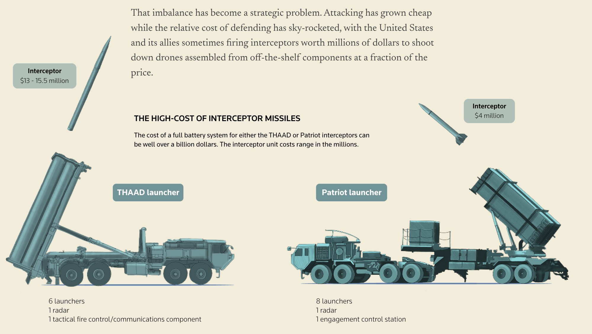 伊朗正在使用大规模无人机袭击(一周内超过 1000 次)来突破防御。每架无人机的成本为 2 万至 5 万美元,而拦截器的成本超过 300 万美元。