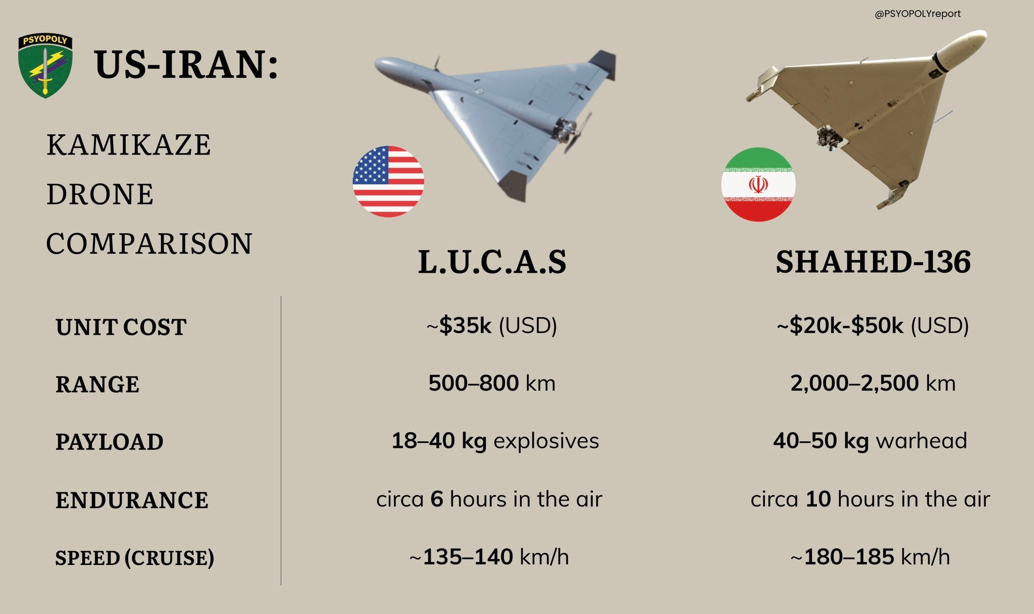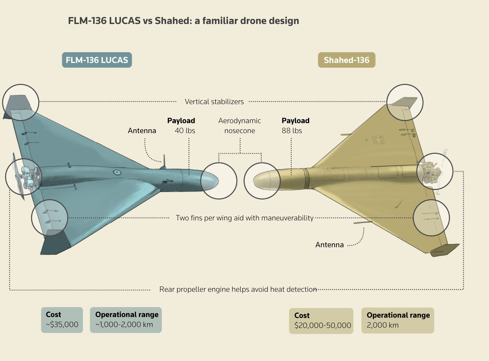 美国仍然依赖高端飞机(F-35、B-2,已部署约 200 架),但现在正加紧部署更便宜的系统,如 LUCAS 无人机,以跟上对手的步伐。