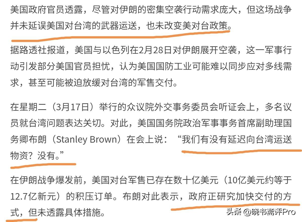 我们的警告,美国没有听进去,美官员对我们放硬话!3月18日,根据新加坡联合早报报道,美国国务院政治军事事务首席副助理国务卿布朗表示,尽管对伊朗的密集空袭行动需求庞大,但这场战争并未延误美国对台湾的武器运送,也未改变美对台政策。美国对台军售已存在数十亿美元的积压订单。布朗对此表示,政府正研究加快交付的方式。 很显然,尽管我们一而再的警告美国必须慎之又慎的处理台湾问题,但是从美国内部传递的信息来看,我们的警告,美国完全没有听进去。美国不仅不打算停止对台军售,还声称即便美国要处理伊朗问题,也未改变美对台政策。在美国看来,美国似乎觉得自己无需理会我们在台湾问题上的主张。 特朗普一方面想要访华,一方面在我们关切的核心问题上递刀子。但从我们的角度而言,如果美国处理不好台湾问题,那特朗普能不能访华都是一个大问题。台湾问题是中美关系的地基,地基不稳,整座大厦都摇摇欲坠。美方想一边踩着我们的红线,一边和我们谈合作、搞会晤,甚至想要拿到大订单,这绝对没有可能。 台湾问题,我们寸步都不会让。现在特朗普单方面宣布访华行程推后,但是美国别忘了,访华行程根本不是推不推后的问题,而是能不能敲定的问题。不客气的说,特朗普访华行程不能定下来,就是美国在台湾问题上的立场和作为,远达不到我们的要求。任何的推迟和试探,都不会改变我们坚定捍卫自身利益的决心。
