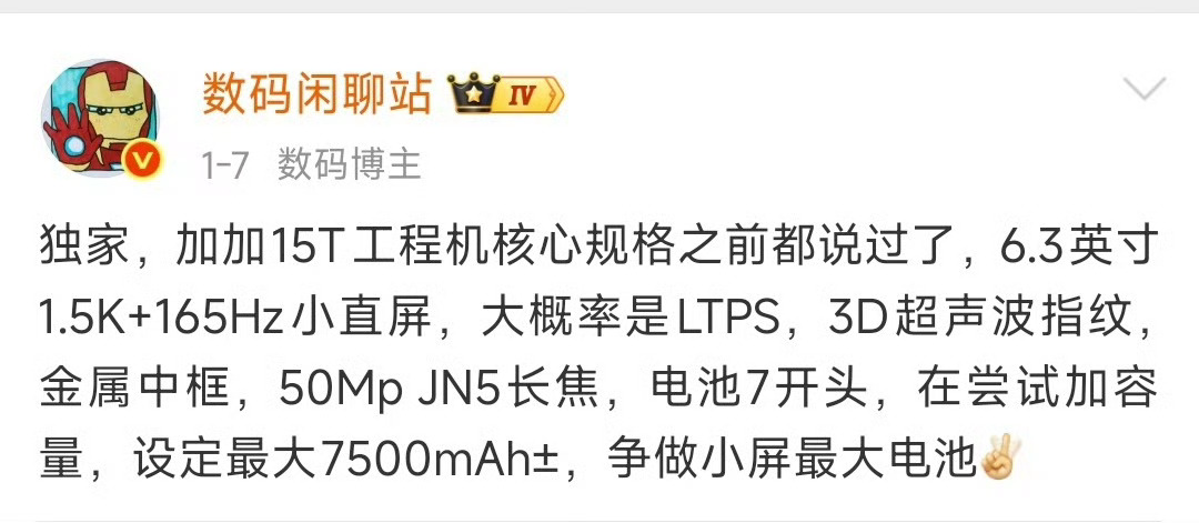 数码闲聊站 一加15T官宣定档!3月24日19:00新品发布!主要配置汇总,第五代高通骁龙8至尊版,6.3寸1.5K 165Hz直屏,7500mAh+100w有线+50w无线,3D超声波指纹,LUMO潜望长焦,满级防水,猜猜多少钱?