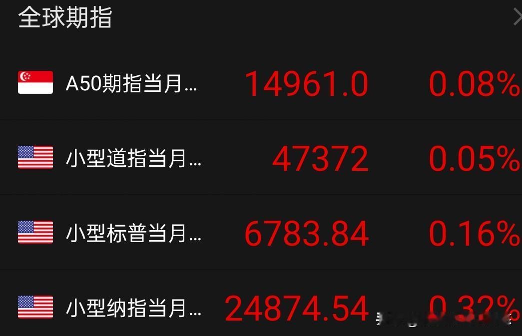 目前外围亚太股市开盘,台湾加权涨1.6%,日经涨1.9%,韩国指数涨3.8%。美国三大股指期货上涨中,A50期指小幅上涨。我们这边马上开盘,接下来A股港股走高的概率很大,拭目以待!