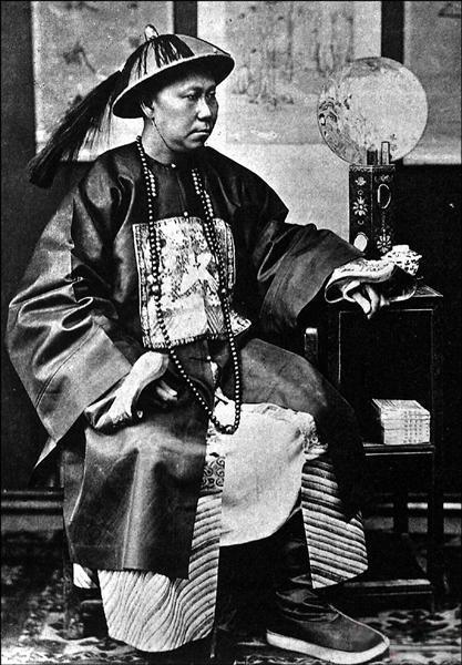 这是晚清名臣沈葆桢的传世肖像照,气场全开。 他身着清代一品文官朝服,胸前仙鹤补子