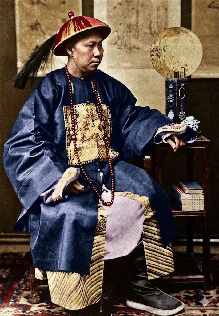 这是晚清名臣沈葆桢的传世肖像照,气场全开。 他身着清代一品文官朝服,胸前仙鹤补子熠熠生辉,颈挂朝珠、头戴暖帽,作为林则徐的女婿、晚清洋务派中坚,他端坐案前,神情肃穆儒雅。 这位“船政之父”一手创办福建船政与海军学堂,培育出严复、邓世昌等人才;1874年临危赴台逼退日军,奠定台湾近代化根基。在那个“三千年未有之大变局”里,他守得住传统礼制,更敢开近代海防先河,是洋务运动里最硬核的实干派。