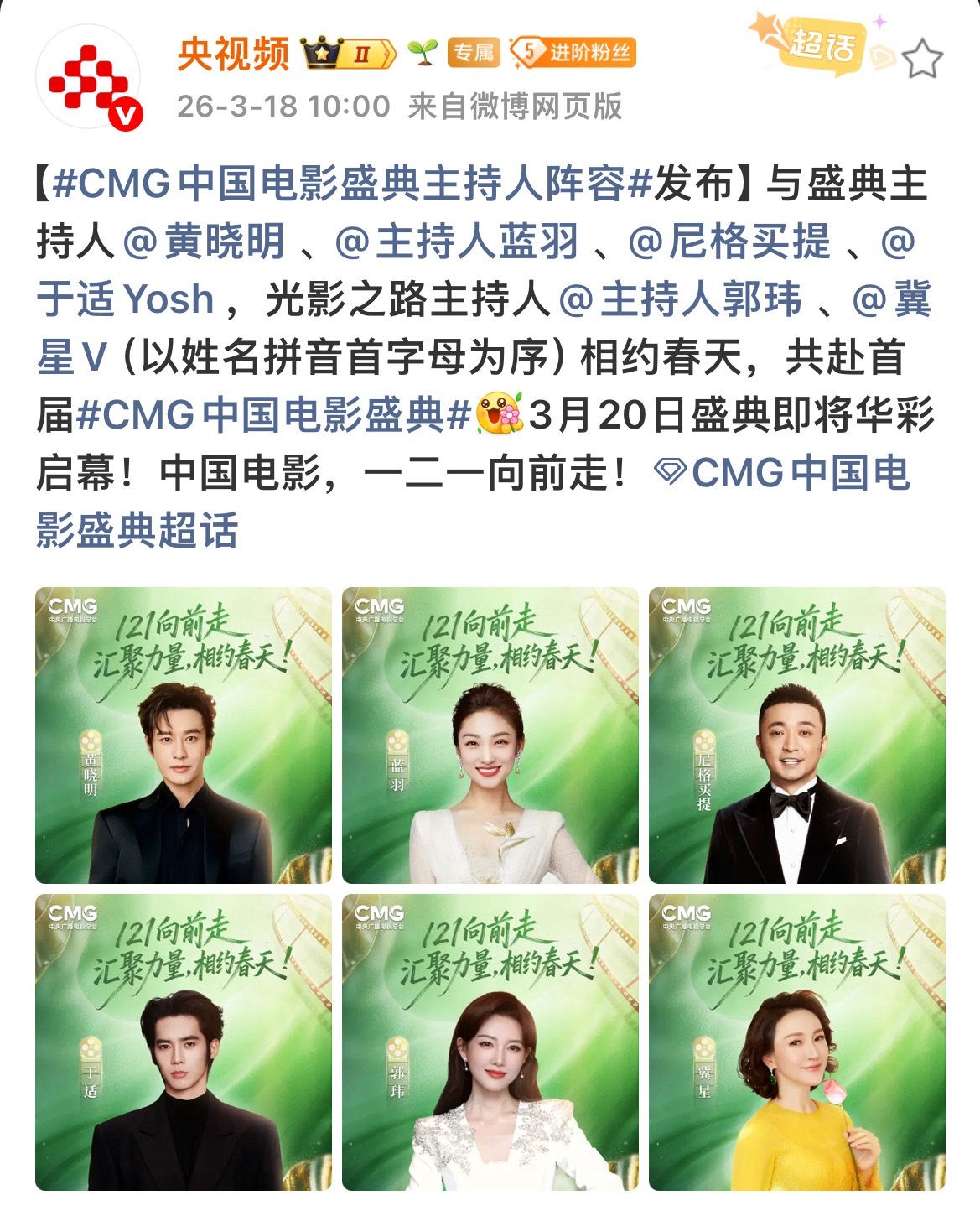 哇恭喜于适官宣CMG中国电影盛典主持人!从演员跨越主持人,从小型活动到大型晚会、从影视到时尚领域,一步步积累了多次主持相关经验,这次CMG盛典是他主持履历的又一次重要升级期待3月20日于适的精彩表现!