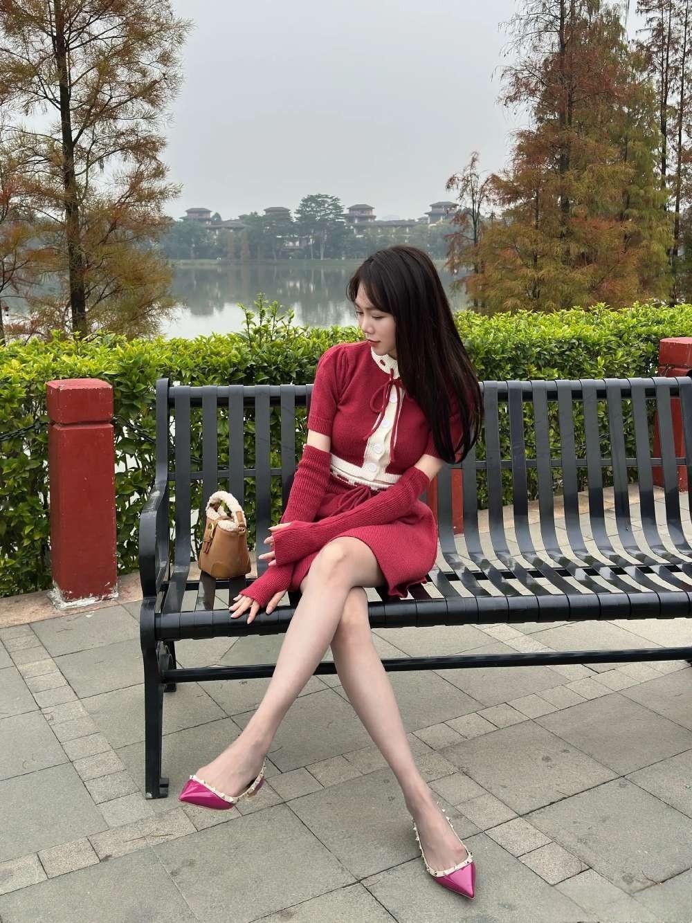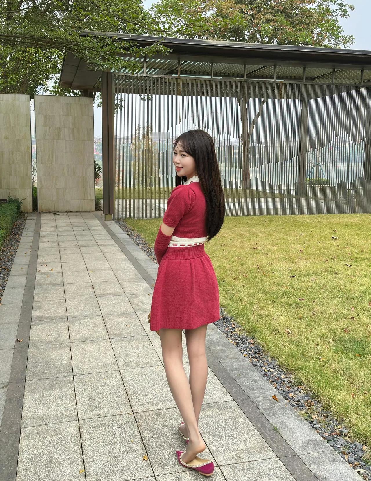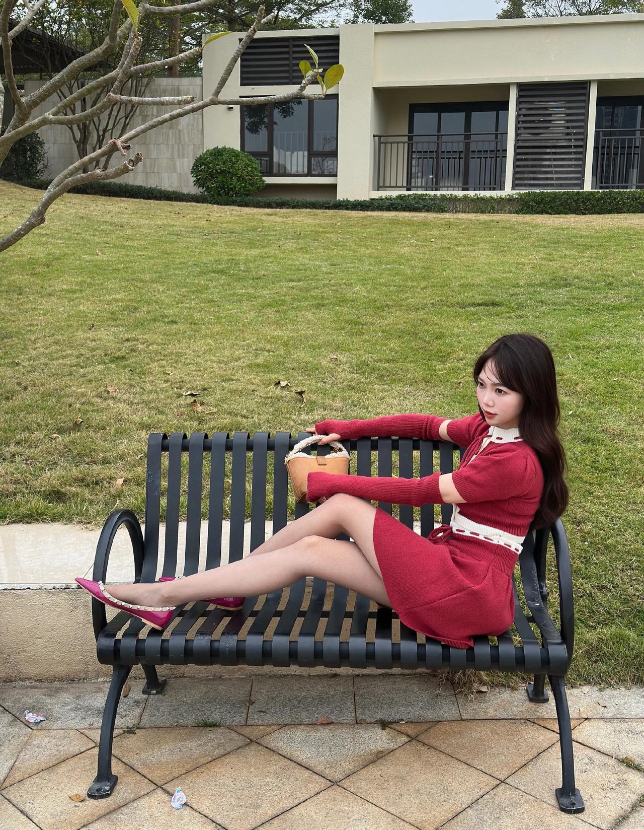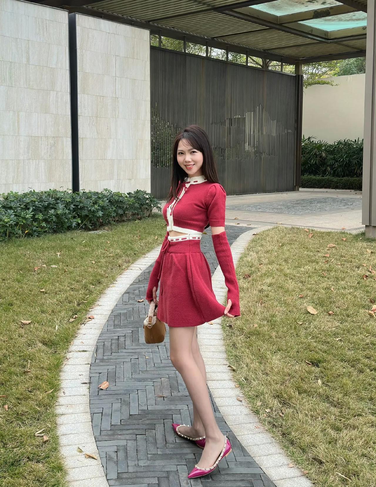 这套是甜酷复古少女风,核心是红白金边针织套装:镂空袖+短款设计自带甜酷少女感,金边装饰增加复古精致细节,浅肤色袜+玫红尖头鞋强化了亮眼氛围,搭配复古小包,整体甜而有个性。针织感穿搭 针织套装搭配 玫粉针织套装