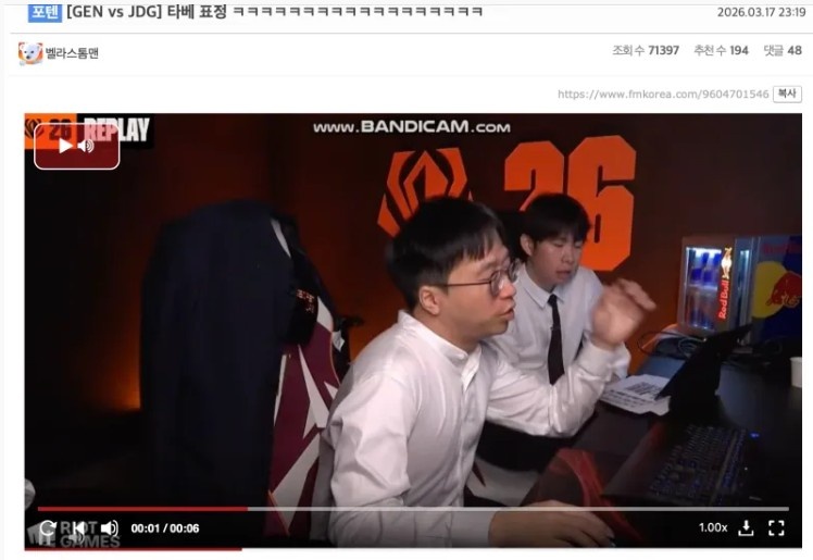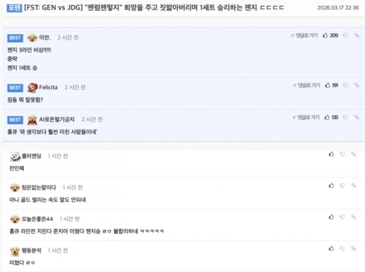 GEN粉丝们对26GEN“Kiin-Canyon-Chovy-Ruler-Duro-Ryu监督”的民心检测。