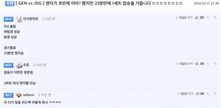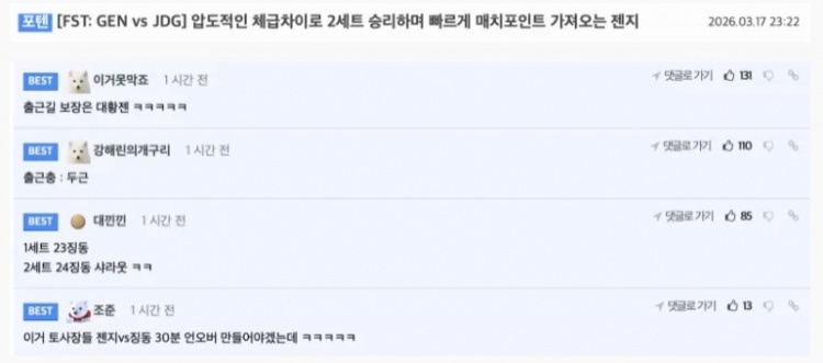 “粉丝们要上班吧,晚安”迅速3比0取胜的GEN。