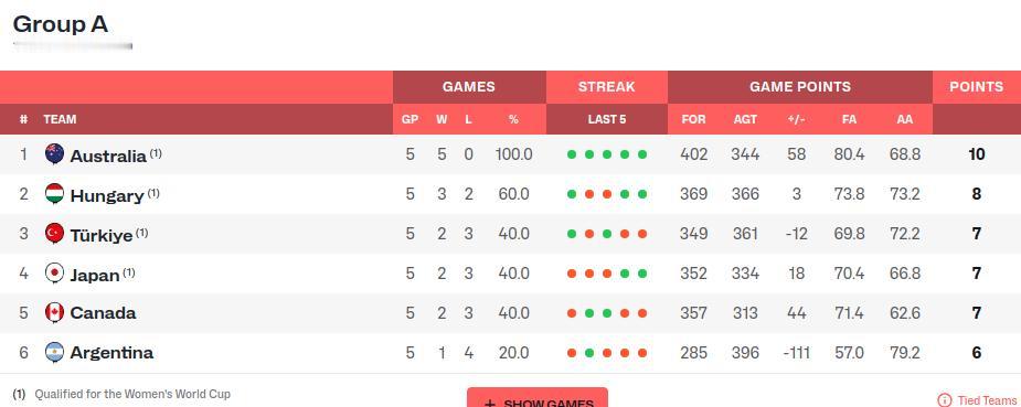 无缘世界杯却排名最高的球队出炉。 北京时间18日凌晨,女篮世界杯资格赛土耳其站的比赛全部结束。在最后一场比赛中,加拿大队虽然奋力拼搏,但仍然76-82不敌澳大利亚队。 这样,加拿大队与土耳其、日本同为2胜3负,谁出线先比较相互之间的胜负关系。 有意思的是,土耳其队竟然同时战胜了日本队和加拿大队,排在最前面;而日本队也战胜了加拿大队,排在第二;只有加拿大队对阵这两支球队均败下阵来,只能排在最后,无缘世界杯。 加拿大队是赢了小组第二名匈牙利队与小组垫底的阿根廷队。 加拿大队世界排名第7位,是本届资格赛出局的最高排名球队。第二高是与中国队同组的巴西队,她们世界排名第9位。巴西队也是2胜3岁,出局原因是输在相互之间的净胜分。资格赛的每一场比赛每一分都不能大意啊。