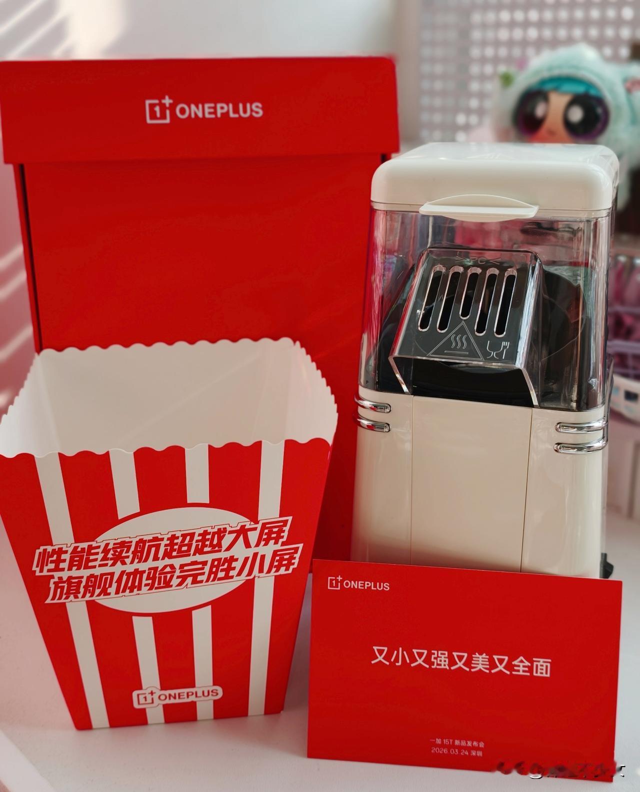 收到了新一代“小屏大魔王”一加 15T的发布会邀请函啦,居然是一台爆米花🍿机!还给我们贴心的准备了玉米粒跟装爆米花的桶!要知道这一小袋玉米粒就能爆出一大桶爆米花,也暗示着一加15T小身材,大能量。不缩水、不妥协,性能、续航、影像全面拉满,还跟爆米花一样香~那我们3月24号见咯!