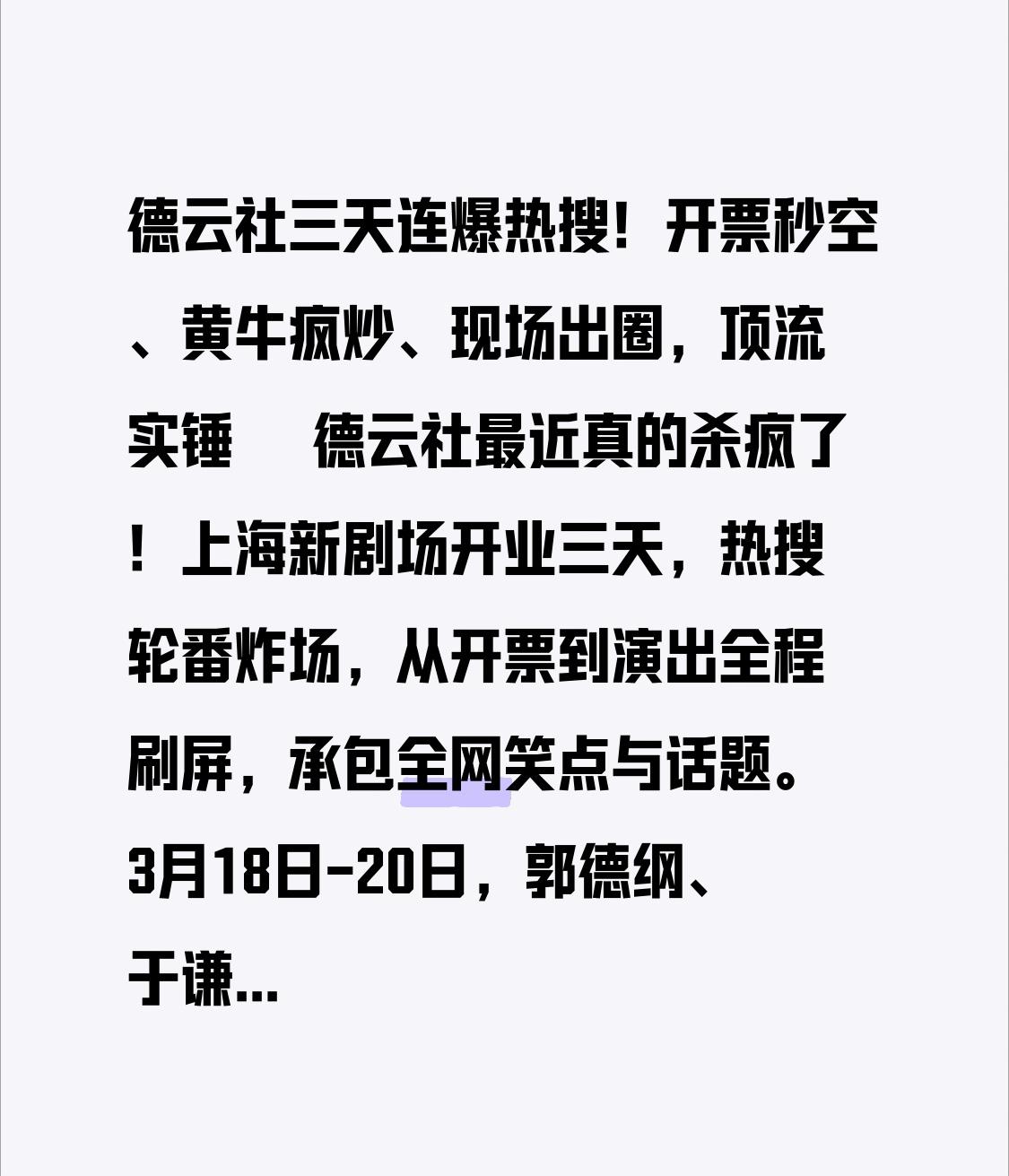 德云社三天连爆热搜!开票秒空、黄牛疯炒、现场出圈,顶流实锤🔥 德云社最近真