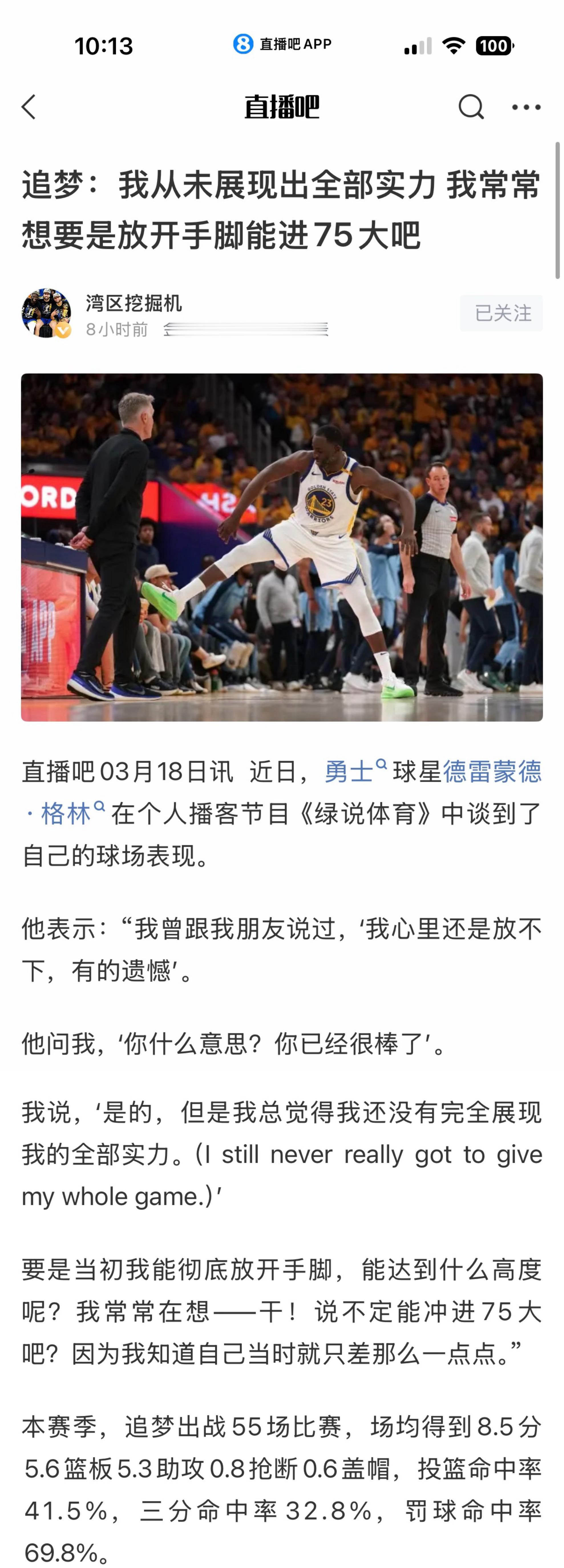 追梦:我从未展现出全部实力,我常常想要是放开手脚能进75大吧