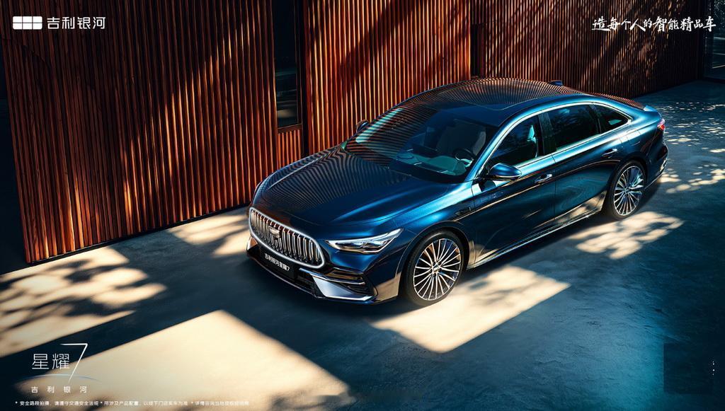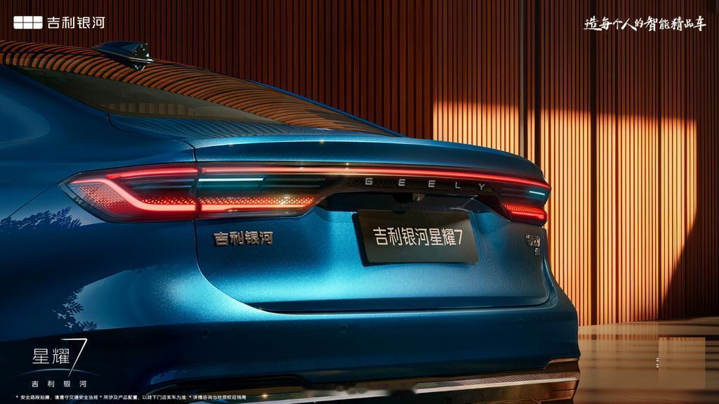 【车长近5米,轴距超2.8米,吉利银河星耀7官图发布】日前,吉利汽车公布了旗下全新中级轿车银河星耀7的官图。新车延续星耀轿车家族的前脸设计,采用大嘴式发光进气中网格栅、扁平化车标,搭配造型犀利的大灯和隆起的前机盖,年轻化和运动风格鲜明。车身侧面配备了传统门把手,匹配19英寸多幅式轮毂,尾部为贯穿式尾灯,前后均设计有辅助驾驶小蓝灯。车内为环抱式座舱设计,配备了豪车同款的浮雕打孔座椅、超5.4㎡全舱软包、2㎡一体成型顶棚、中控区域设置有水晶旋钮,注重豪华和科技感。根据工信部新车申报信息可知,星耀7车身尺寸为4958mm/1915mm/1505mm,轴距2852mm,已达到B+级的身段,车内驾乘空间相当可观。 智能驾驶辅助方面,星耀7配备了千里浩瀚H3方案,该方案包含 26 个高感知传感器与20万级主流大算力芯片,能够实现NOA高速领航驾驶辅助以及全场景自动泊车功能。 动力部分,银河星耀7搭载插混动力,配备e-AWD智电四驱系统,综合功率为312千瓦,峰值扭矩526牛·米,零百加速时间为5.4秒。【来自懂车帝车友圈】