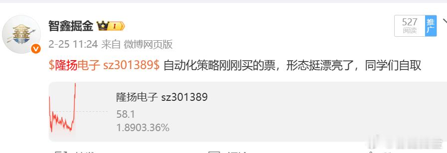 $隆扬电子 sz301389$ 前期自动化策略买的票 回踩后又重新 准备冲刺了