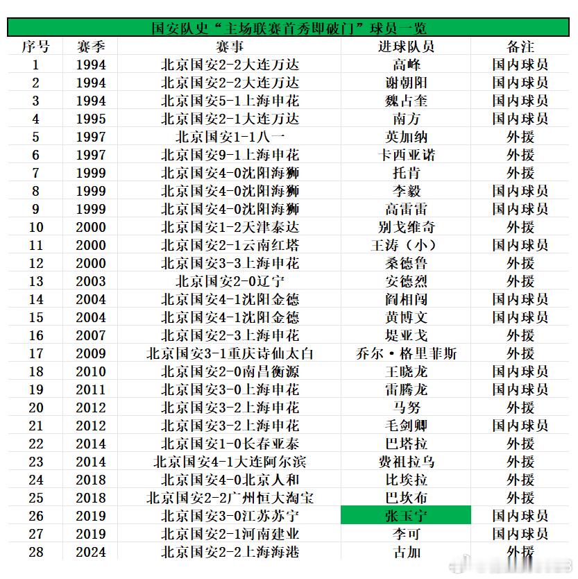 国安队史【主场联赛首秀即破门】球员一览📊现役张玉宁在列,巴坎布、比埃拉、费祖拉乌上榜,猜猜周末能否更新?~