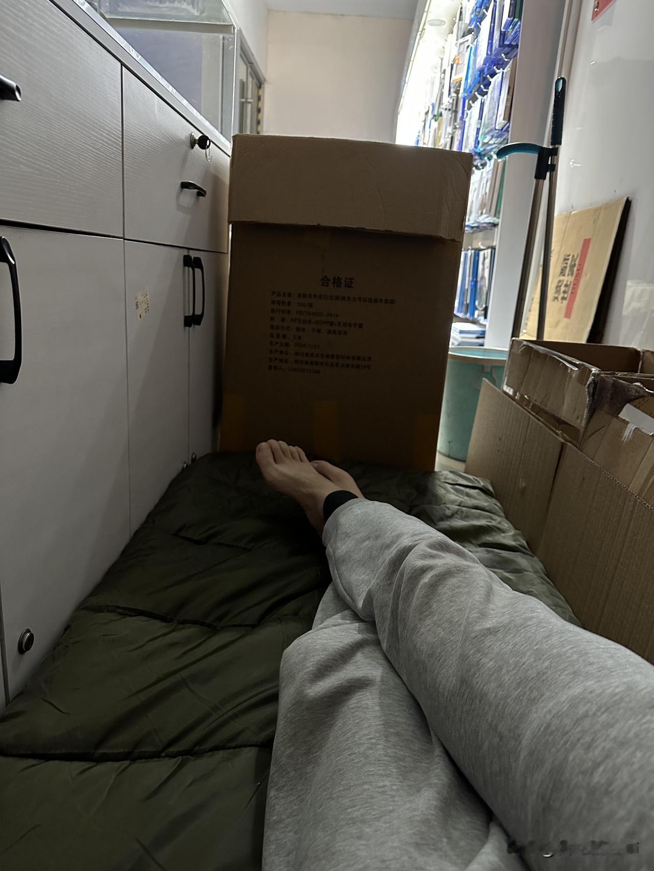 下班就地躺下,不花房租,抠门永存! 隔壁大哥这两天一直加班,而我早已躺下打了两把杀戮尖塔,不但省了房租还省了通勤时间,赢麻了! 今天又被老客户关照了,送了一个巨好吃的烤肠,没有冰箱,计划明天一天把它吃完。 今天依旧是泡面加汉堡的固定搭配,饮食上没花钱,全天花费一包烟钱。 晚安!