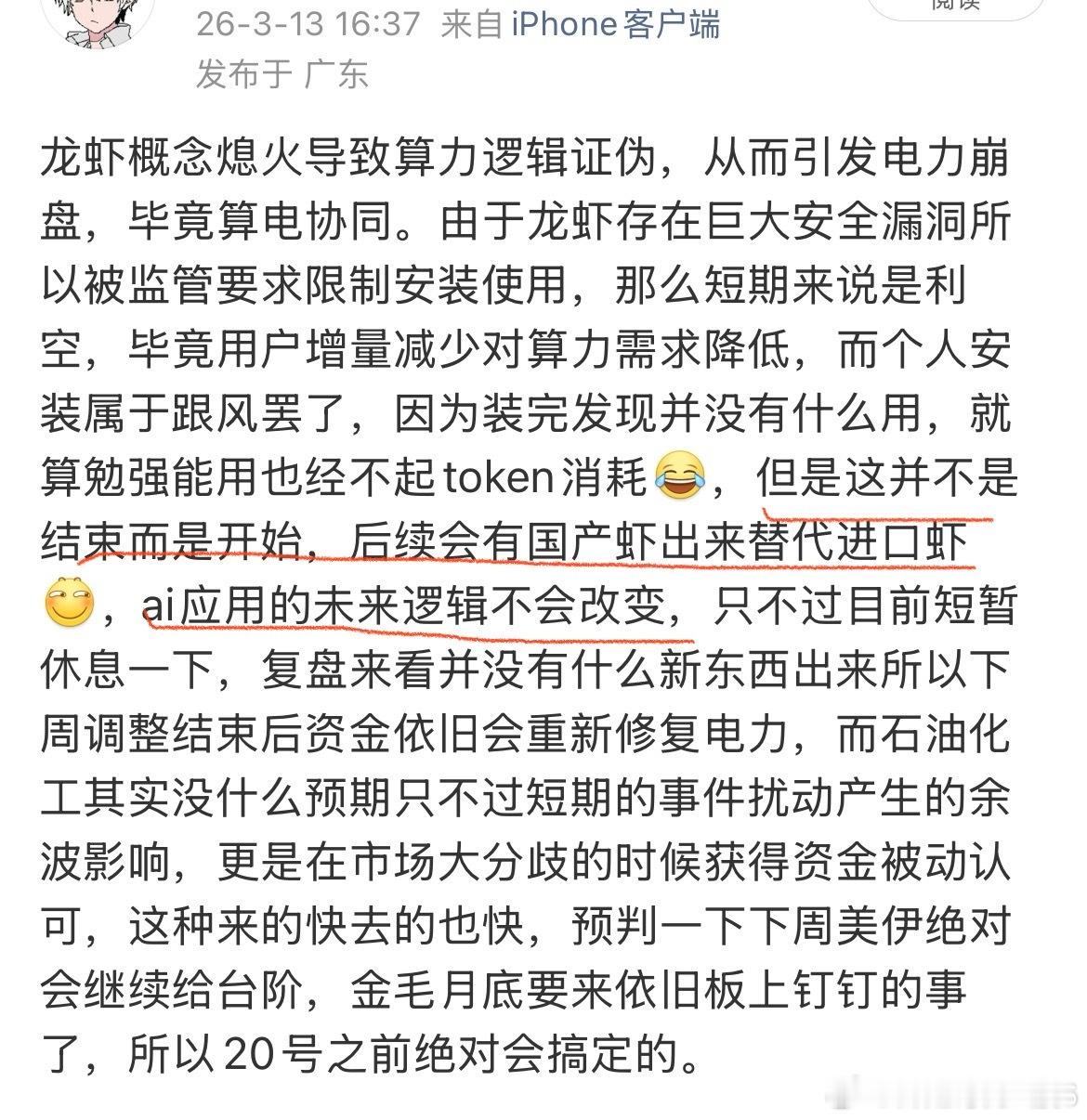 龙虾和存储芯片,可惜大盘没有见底资金提前去抄底了,龙虾对应的是ai应用+数据中心