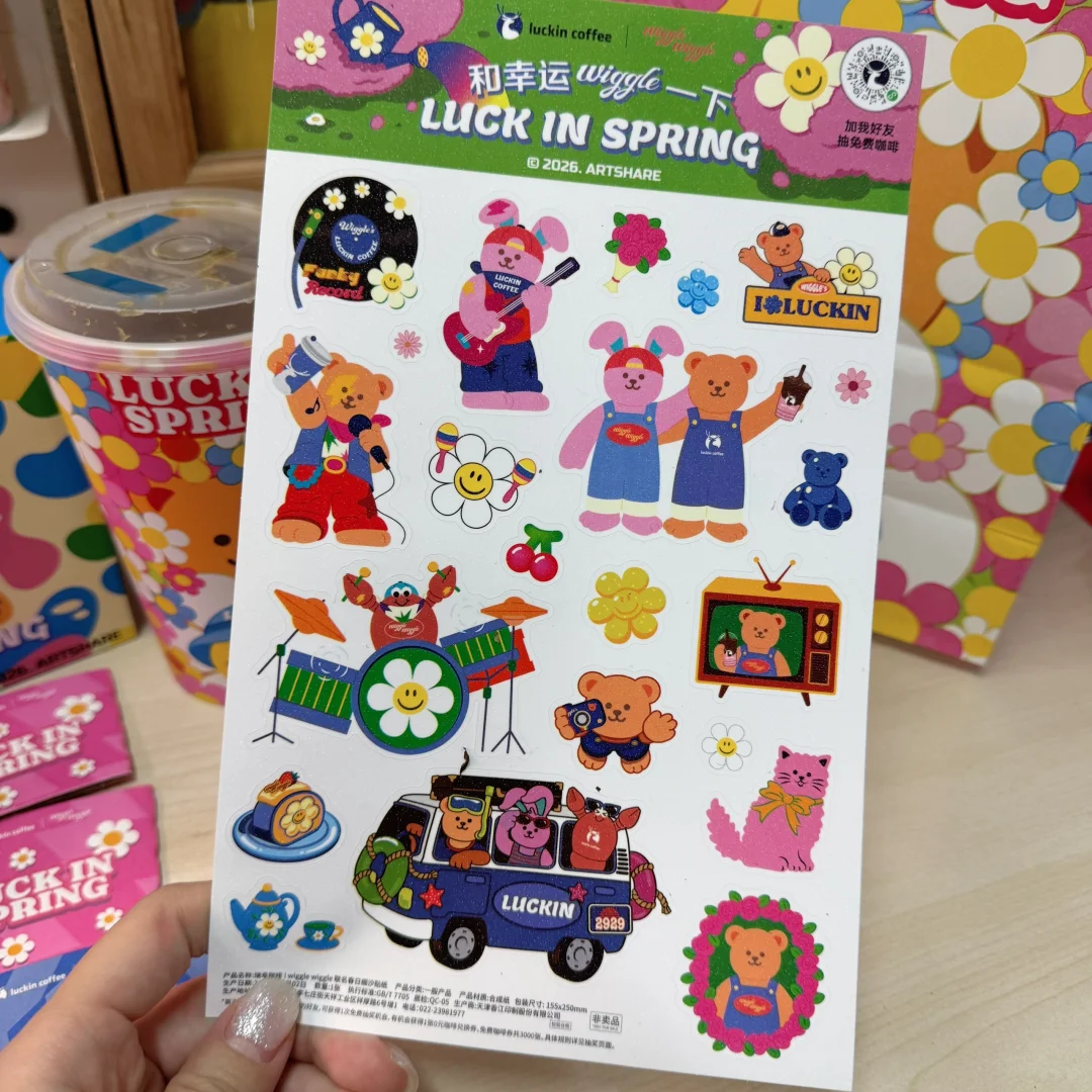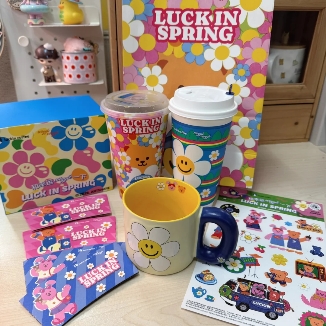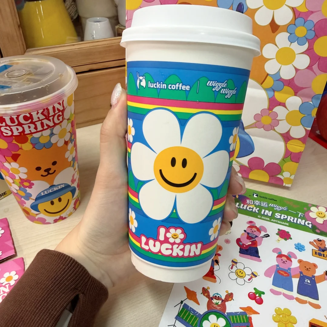 成年人的快乐是从我看到 我想要 我得到只用了10分钟[派对R] get了瑞和Wiggle Wiggle的联名款! 笑脸花杯太貌美了(瑞幸终于出好看的杯子了 为了杯子喝两杯咖啡☕️ 贴纸留给娃玩 超大杯才有的特殊杯 喝完也舍不得丢了[满月R]