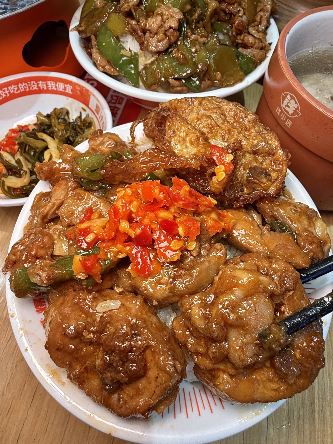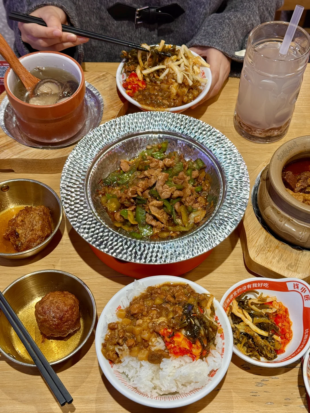 就在下沙!穷鬼幸福餐😭人均20+就能吃饱饱的~ 出了新品贵州红酸汤牛肉饭🍚是用陶罐慢炖出来的!品质没话说,大块大块的带筋牛肉好满足…而且浓郁的汤汁拿来拌饭相当美味!!! 还可以加个大个儿的蛋黄狮子头,好好吃! 辣椒炒肉配肉饼汤也很🉑!
