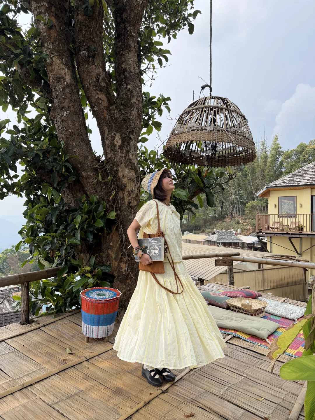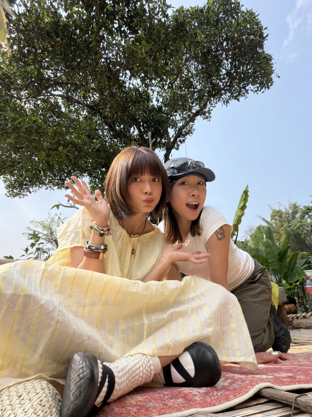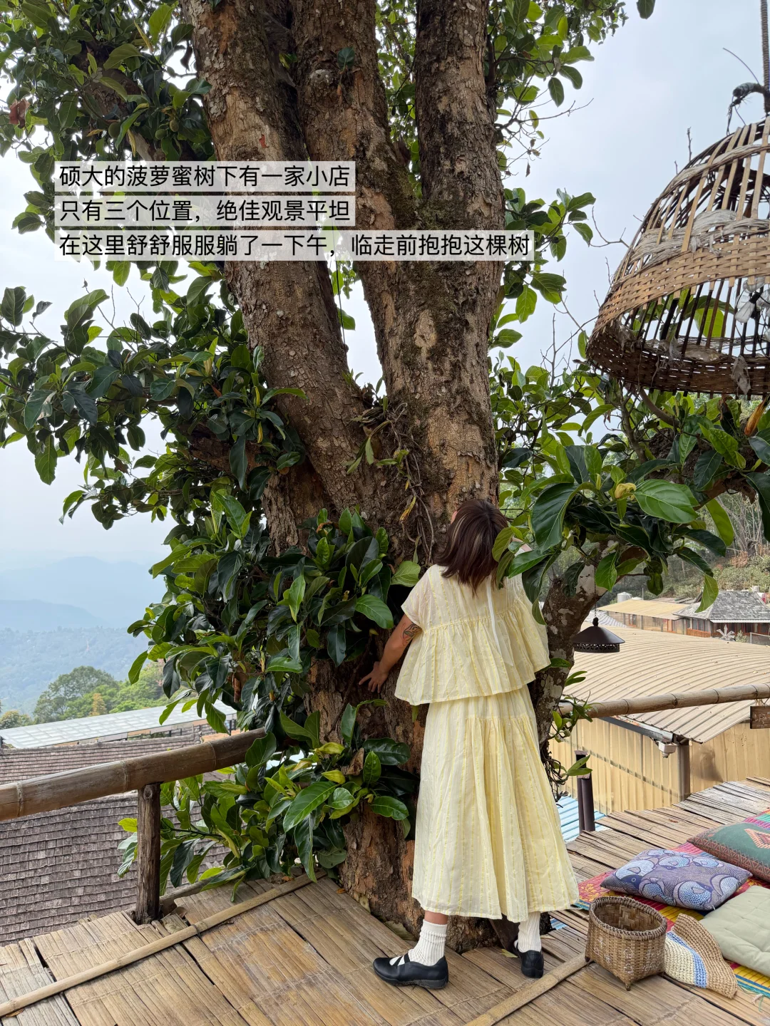 在菠萝蜜树下晒太阳发呆。