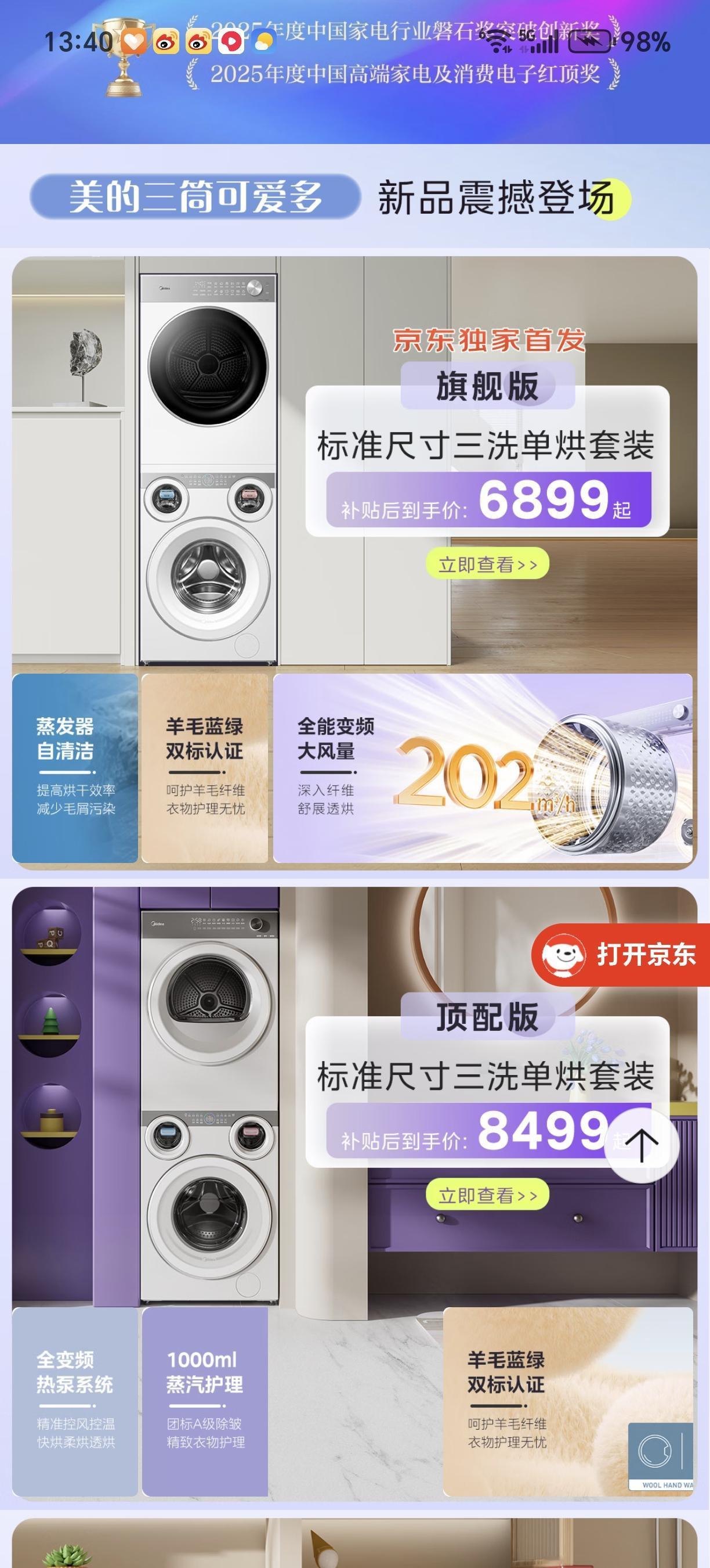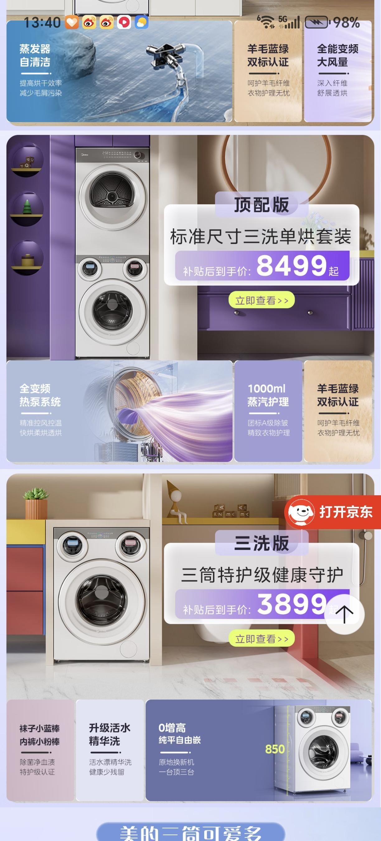 1、海尔:完善智能生态系统,支持远程操控。 2、小天鹅:以水魔方冷水洗技术闻名。 3、西门子:德系精工的代表,i-Dos智能自添加技术,自动精确投放洗涤剂。 4、美的:以高性价比和智能估计功能见长,通过美的美居APP实现远程操控。 5、松下:以泡沫净技术著称,能产生丰富泡沫深入纤维实现深层清洁。 2025年8月,美的可爱多三筒洗烘一体机(MD11DDEX)惊艳上市,它凭借独特设计与强大功能,为家庭洗护带来全新体验,尤其适合有孩子、注重卫生的年轻家庭,满足他们对内衣、袜子、外衣分开洗护的需求,兼顾健康与效率。 ,这款可爱多洗衣机省时省力、又不费电,我最喜欢这台洗衣机三筒分区洗烘的设计,全家衣物一次搞定,真想立刻、马上就换这款美的洗衣机! • 三筒独立+三路活水:大筒(10kg)洗床单外套;左小筒(内衣)配小粉棒去血渍;右小筒(袜子)配小蓝棒抑真菌;三筒同洗同烘、不交叉不串味。 • 高效省时:不用分批、不用等,出门前一次收完全家干净衣。 武汉这几天一直下雨,如果家里有美的可爱多洗衣机,用热泵柔烘功能,回南天也能晒出太阳味。 • 42℃低温热泵:不烫不伤纤维,潮被子、厚外套、针织衫烘完蓬松柔软,像晒过一整天太阳。 • 59分钟快速烘透:洗完即烘、即烘即穿,告别霉味与晾晒等待。 • 智能判干+独立风道:不串味、不返潮,养宠家庭也不怕毛屑残留。 • 蒸发器自清洁:自动清污,长期高效不堵风道。 • 标准尺寸可嵌入:850mm高度,不用改橱柜,纯平全嵌更美观。 • 静音稳运行:五纵六横减震,夜间洗烘不打扰。 🩺 医护级杀菌除螨:贴身衣物超安心 • 中卫安医护级认证:银离子+UV紫外线+高温热风三重除菌,除菌率99.99%、除螨率近100%。 • 元气棒+特渍洗:小粉棒分解血渍、小蓝棒抑制脚气真菌,冷水也高效、7天长效抑菌。 • 60℃杀菌+95℃高温煮洗:宝宝衣物、敏感肌、母婴家庭放心用。