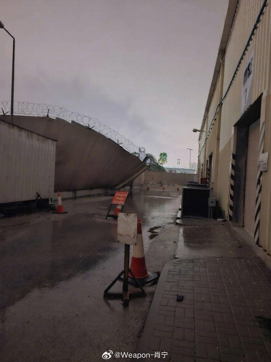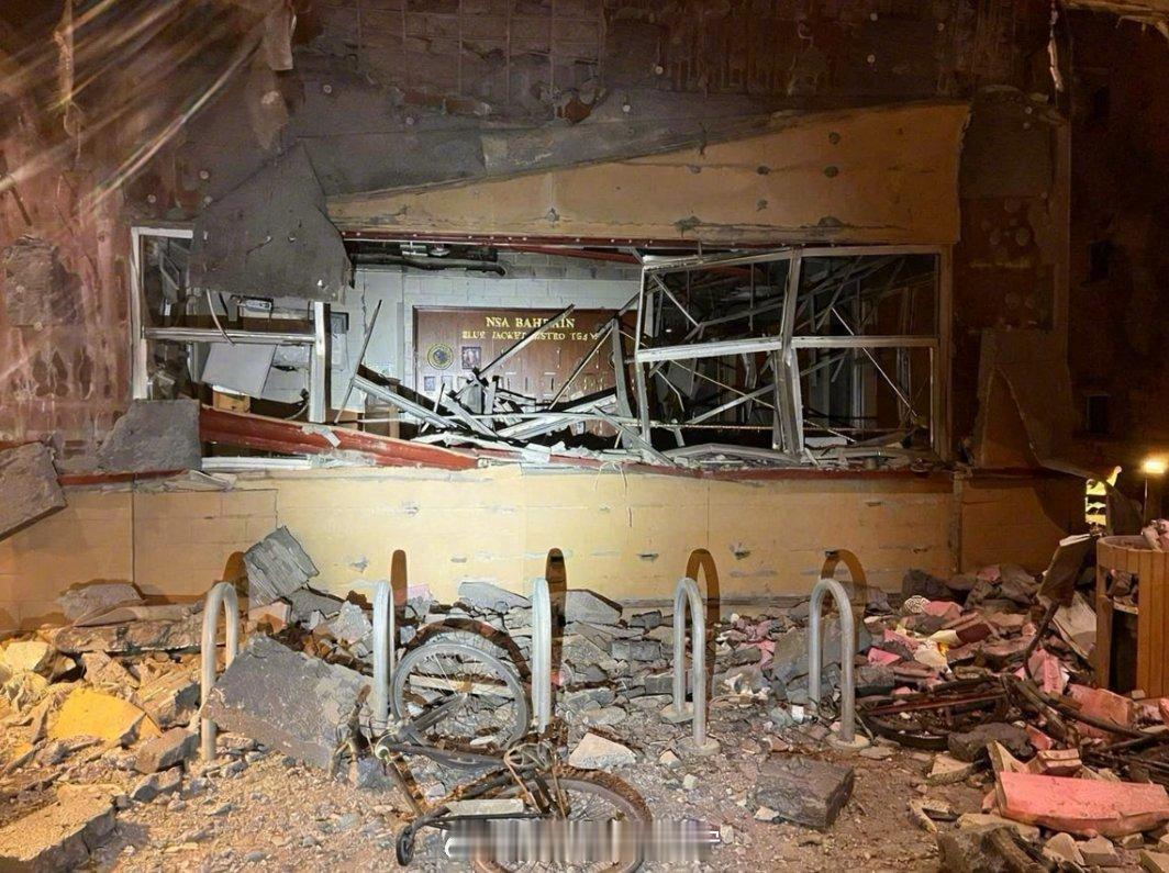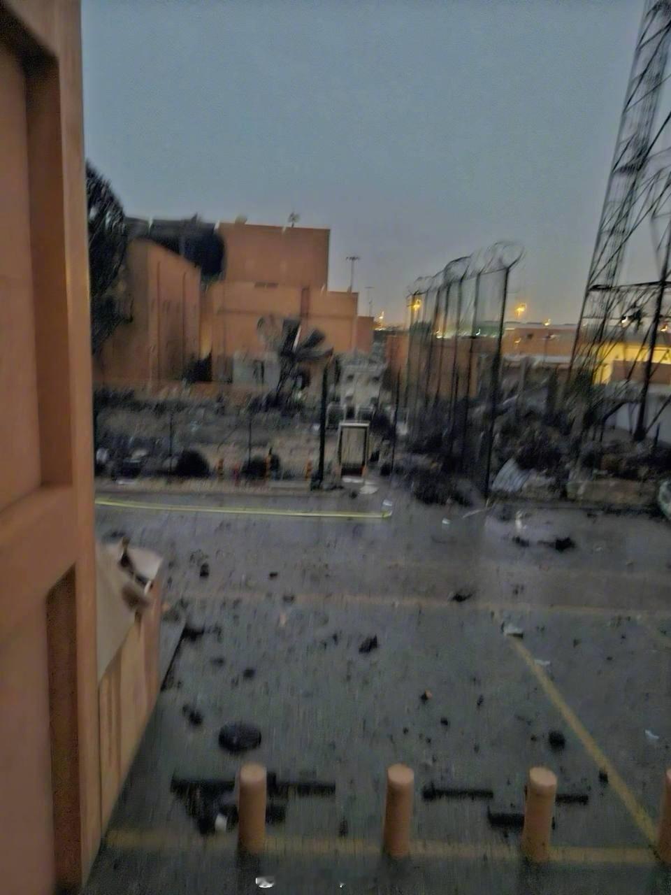 美以伊冲突 地面拍摄的近景照片显示,伊朗袭击美国海军巴林支援基地后,基地遭受大